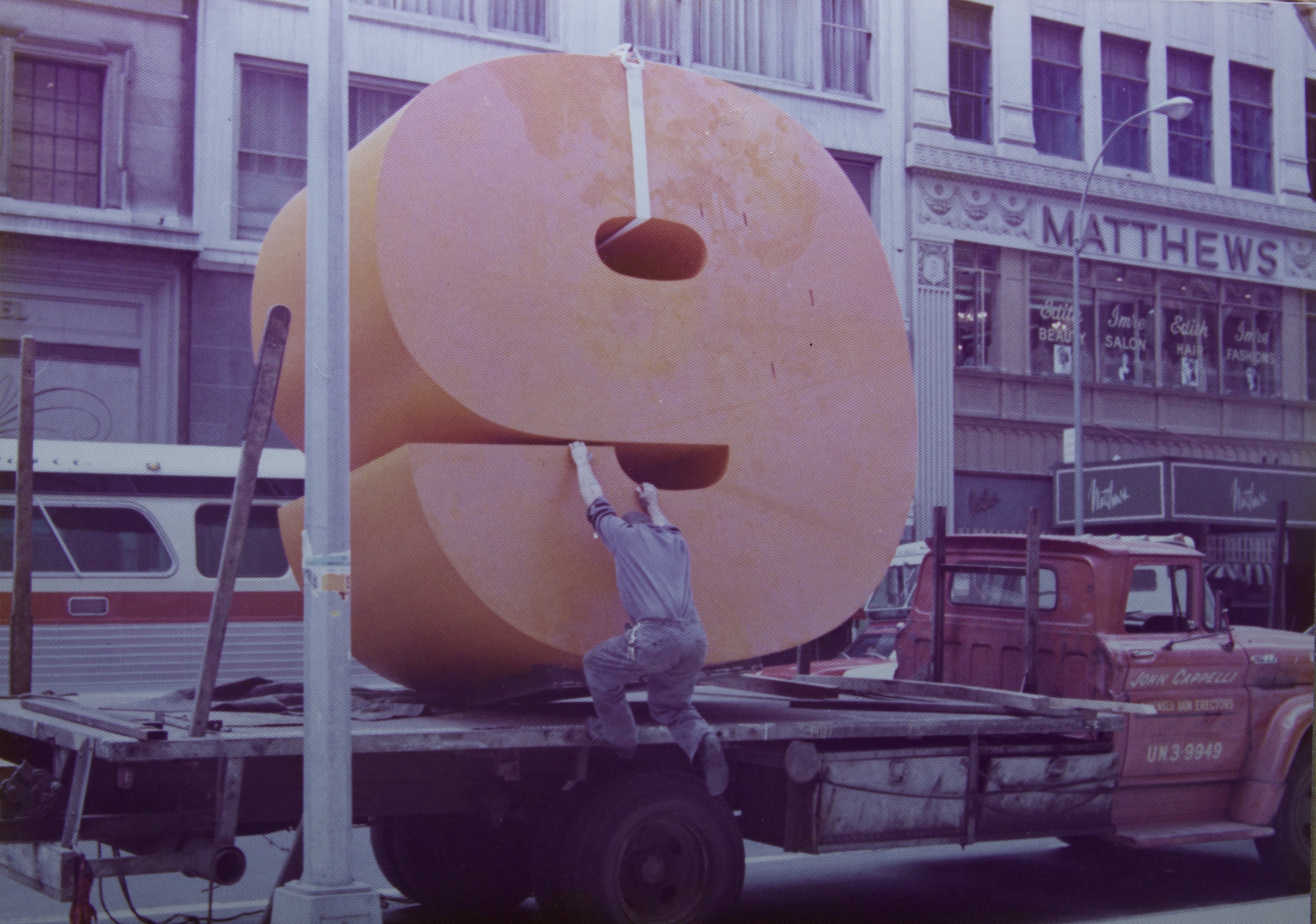 건물 57번가 쪽에는 이반 체르마예프가 디자인한 숫자 "9"의 빨간색 조각상이 있다.[28][29][30] 이 조각상은 약 5443.11kg 무게이며, 높이 약 약 3.05m에 폭 약 1.52m이다.[30] 이 조각상은 동쪽을 향해 5번가를 바라보고 있으며, 지하 3층 높이의 기둥으로 지지된다.[31] 솔로우는 설계된 광장이 지나치게 넓다고 생각했기 때문에 이 조각상을 설치했고,[29] 또한 주변 다른 건물의 밋밋한 벽에서 시선을 돌리고 싶어했다.[32] 이 조각상 아이디어는 체르마예프가 건물 정면이 "9"의 "발사대"가 될 수 있다고 농담한 후 나왔다.[31] 1972년 조각상이 처음 설치된 후, 솔로우는 조각상 배치 장소를 두고 벌어진 분쟁으로 인해 1년 동안 조각상을 철거했다.[33] 그는 결국 보도에 조각상을 설치하기로 합의했으며, 처음에는 시에 연간 1000USD의 임대료를 지불했다.[30] 1990년대에 이 조각상은 ''뉴욕 타임스''에서 "문화 유물일 뿐만 아니라 건물의 상징"으로 묘사되었다.[34]