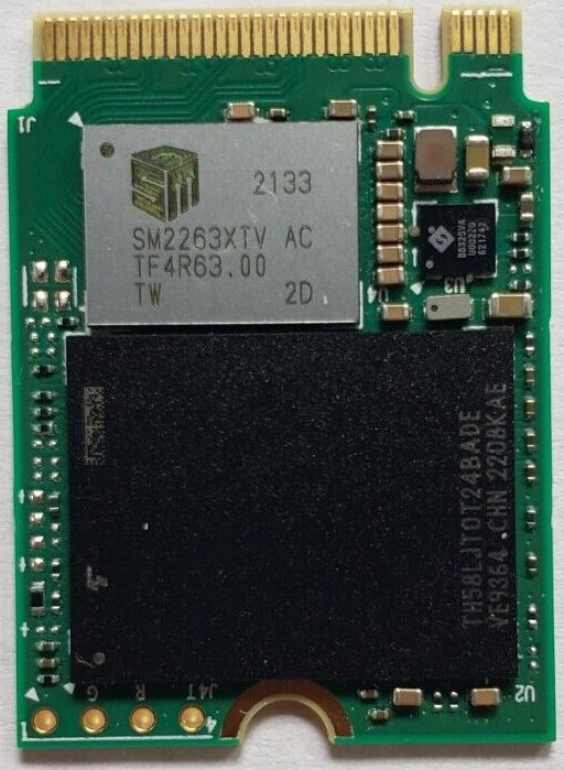 인터페이스와 폼팩터도 발전했다. 기존의 SATA 및 SAS 인터페이스와 표준 HDD 폼팩터 외에도 mSATA, M.2, U.2, NF1/M.3/NGSFF,[9][10] XFM Express,[11] EDSFF[12][13] 등 새로운 폼팩터가 등장했다. 또한 PCI Express(PCIe)를 통한 NVM Express(NVMe)와 같은 더 빠른 인터페이스는 HDD의 성능을 훨씬 뛰어넘는 속도를 가능하게 했다.[3] 2021년에는 NVMe 2.0 규격과 함께 Zoned Namespaces(ZNS) 기술이 발표되어, 데이터를 SSD의 물리적 위치에 직접 매핑하여 접근 속도를 높일 수 있게 되었다.[147] 2024년 삼성은 세계 최초로 하이브리드 PCIe 인터페이스를 갖춘 삼성 990 EVO를 발표했는데, 이 SSD는 M.2 슬롯에서 x4 PCIe 4.0 또는 x2 PCIe 5.0 모드로 작동할 수 있다.[148]