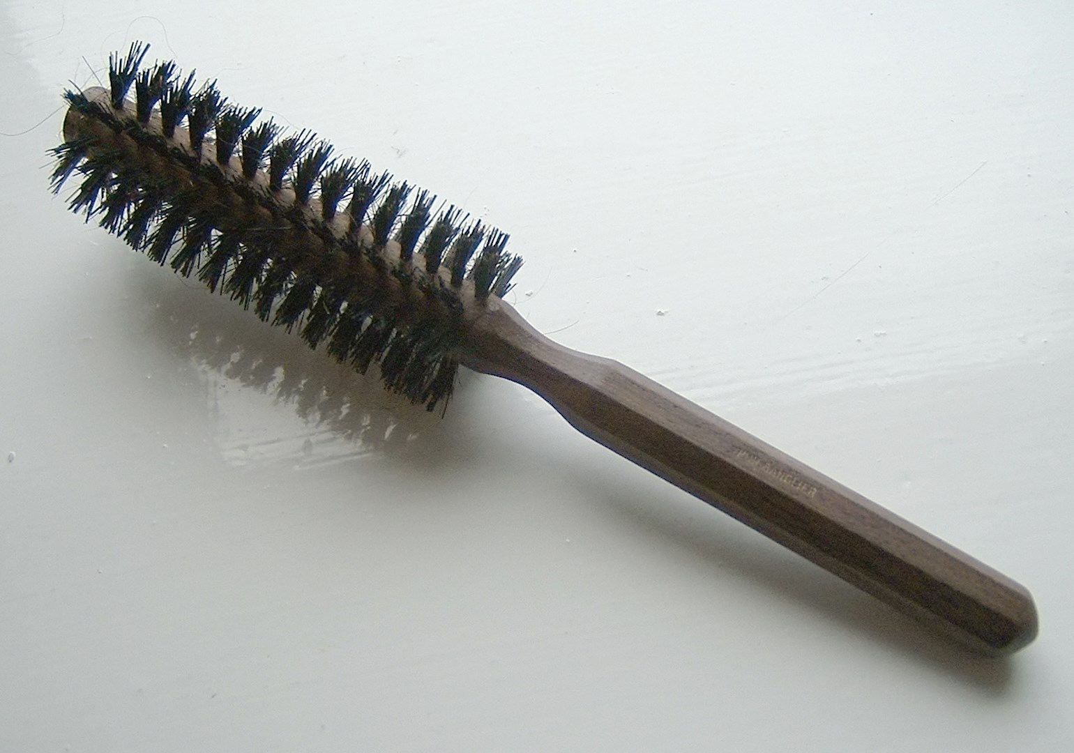 - 둥근 브러시: 일반적으로 헤어 드라이어와 함께 사용하여 모발에 볼륨과 움직임을 더한다. 일부는 헤어 드라이어 사용 시 가열되도록 설계된 금속 또는 세라믹 베이스를 가지고 있다.[1]
