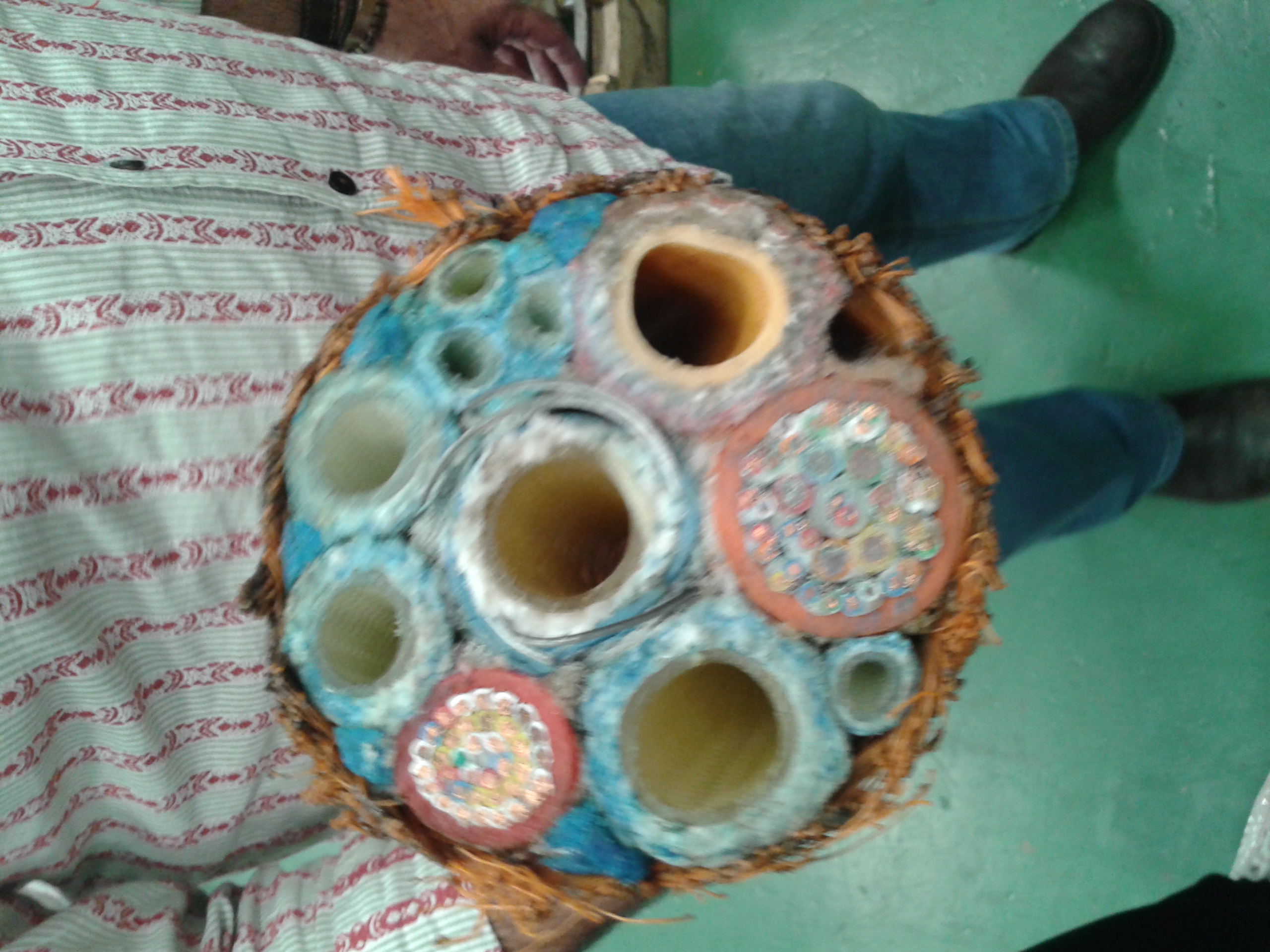 공기 공급 호스 | 통신 장치(수중 전화) 케이블이나 인장 강도 확보 와이어와 일체화되어 "엄빌리컬 케이블(탯줄)"로 사용된다. 송기식 잠수를 "umbilical diving"이라고도 한다. 마스크 또는 헬멧에 부착된 밸브를 거쳐 레귤레이터에 연결된다. |
