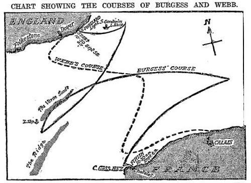 매슈 웹과 T.W. 버지스가 영국 해협을 횡단한 경로 (1875년, 1911년)
