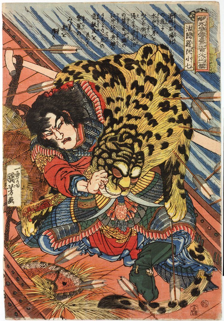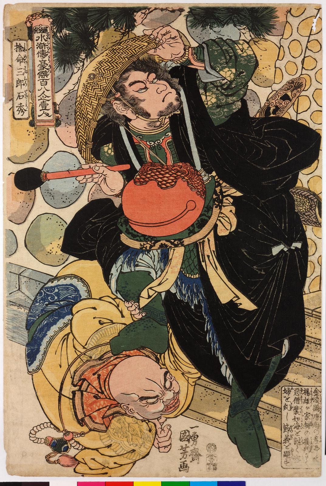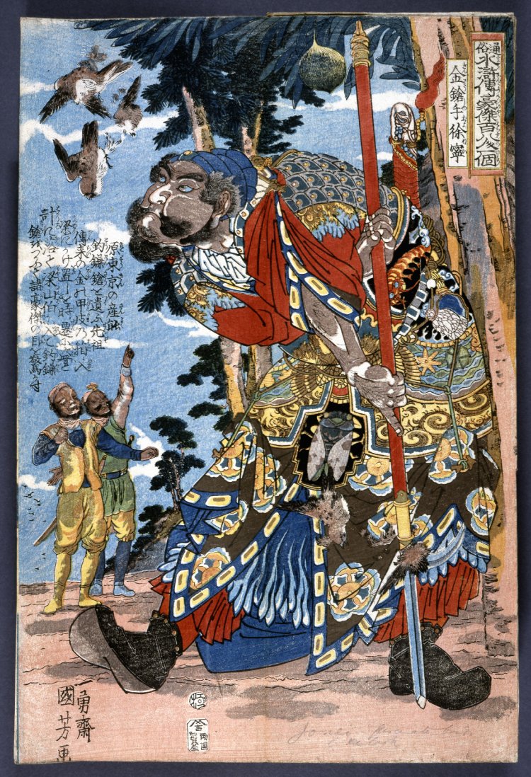 천강성 노지심은 민담에서 주동의 의형제로 묘사된다.[1] 《양주 고사》에 따르면, 양주 고사 "왕학파"에서 전해지는 천강성 무송에 관한 몇몇 인기 민담에서는 그가 "선화 [1119]년" "10월 중순"에 호랑이를 죽였다고 한다.[2]