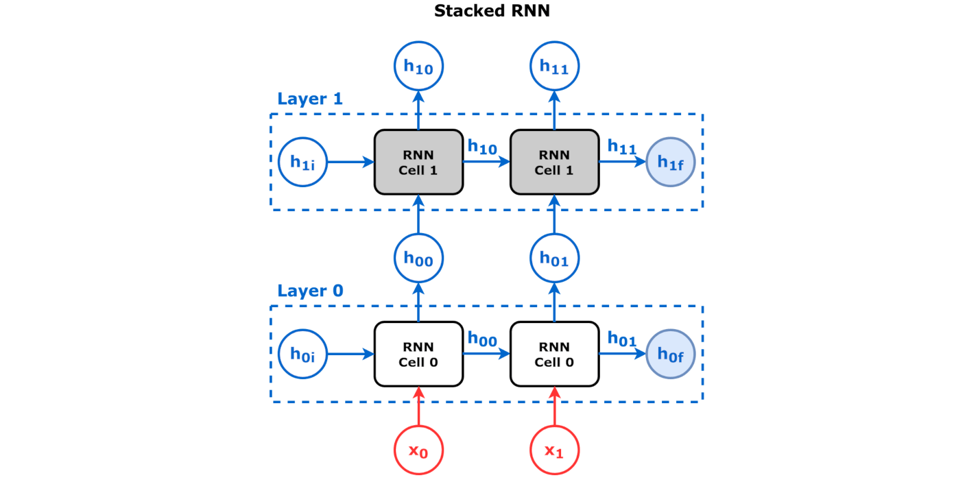 '''적층 순환 신경망'''(Stacked RNN) 또는 '''심층 순환 신경망'''(Deep RNN)은 여러 개의 RNN을 서로 위에 쌓아 구성된다. 각 층은 독립적인 순환 신경망으로 작동하며, 각 층의 출력 시퀀스는 상위 층의 입력 시퀀스로 사용된다.