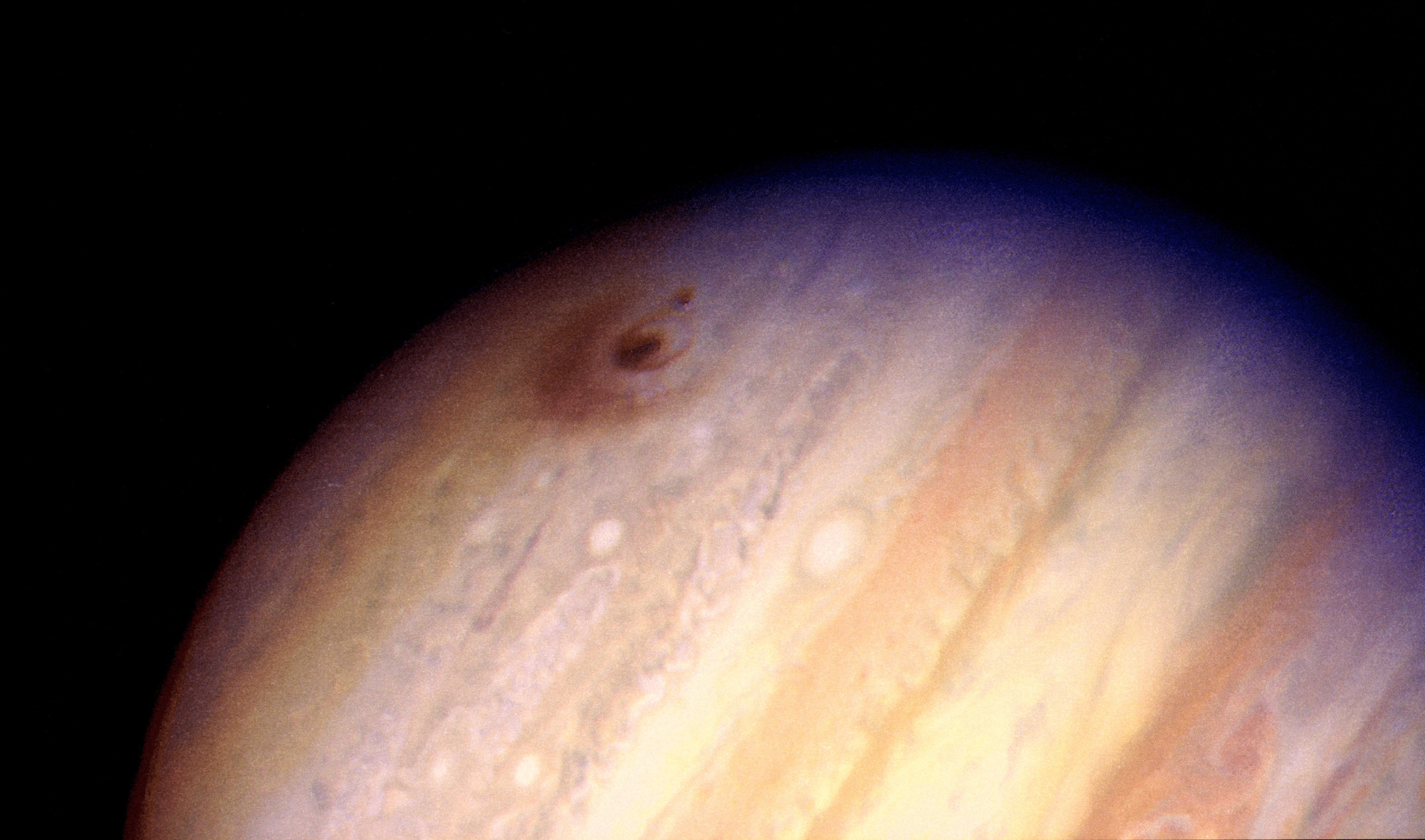 2009년 7월 19일, 슈메이커-레비 9 혜성 충돌 15주년에 목성 남반구에서 태평양 크기 정도의 새로운 검은 반점이 나타났다.[100][48] 열적외선 측정 결과 충돌 지점이 따뜻했고, 분광 분석 결과 목성 대기 상층부에서 다량의 뜨거운 암모니아와 실리카 성분 먼지가 검출되었다.[100][48] 과학자들은 이를 또 다른 충돌 사건으로 결론지었으며, 이번에는 혜성보다 더 작고 단단한, 발견되지 않은 작은 소행성이 충돌한 것으로 추정했다.[100][48]9. 우주 청소기로서의 목성