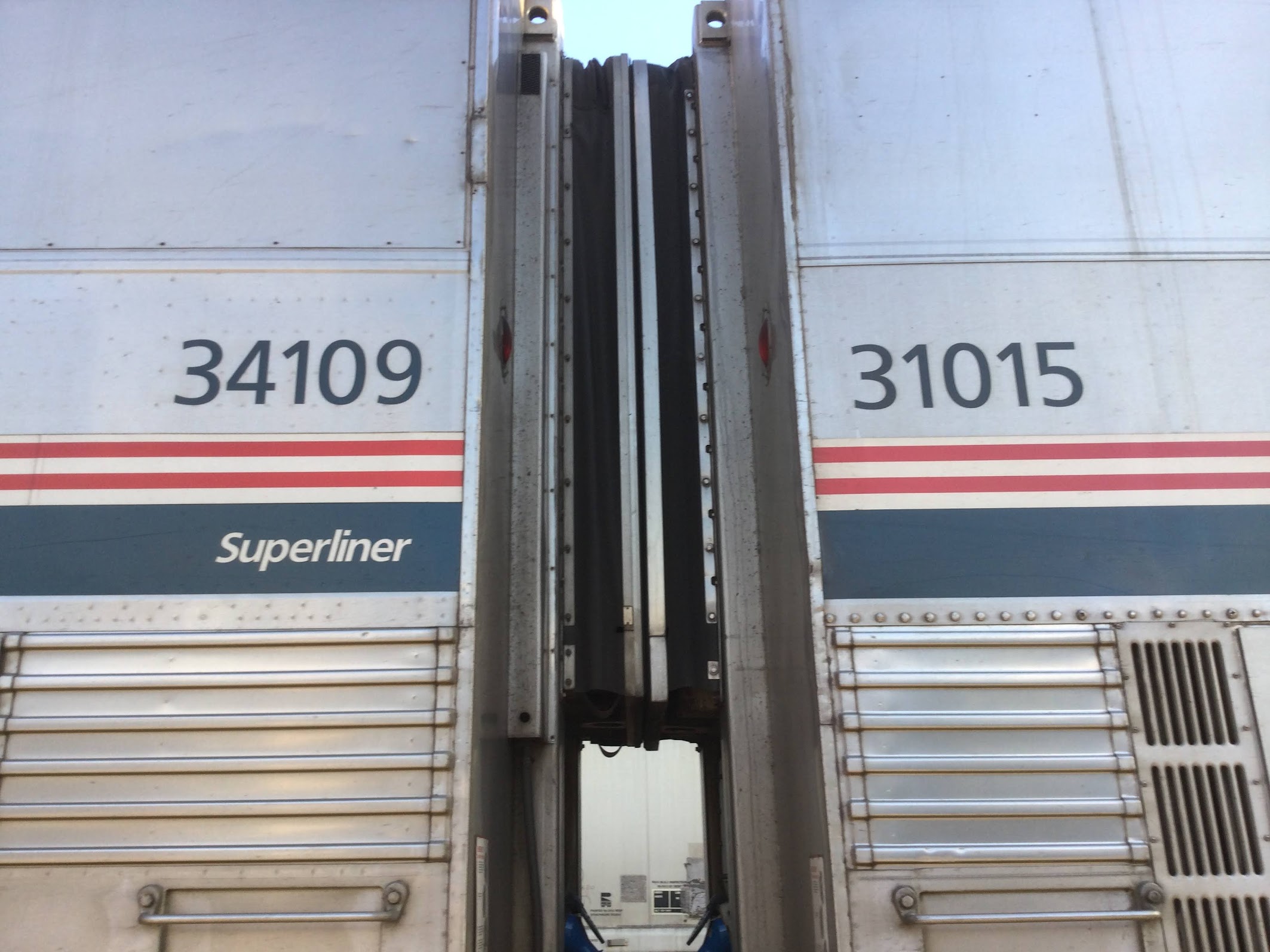 암트랙 슈퍼라이너 객차 두 대를 연결하는 통로. 객차의 상층부만 연결된다.