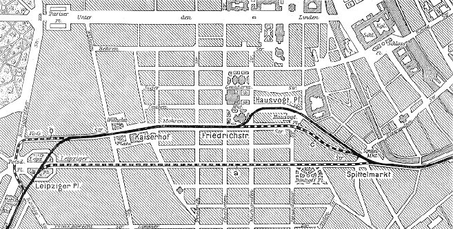 호흐반게젤샤프트는 첫 노선 건설 이후 베를린의 역사적 도심으로 노선을 확장하고자 했다. 기존 포츠다머 플라츠역에서 슈피텔마르크트를 거쳐 알렉산더 광장 방면으로 노선을 연장하는 계획이었다.약 2.3km 길이의 포츠다머 플라츠-슈피텔마르크트 구간은 도시 구조, 지질학적 문제, 지역 정치적인 문제로 건설에 어려움을 겪었다. 베를린 시는 도로 손상, 소음 피해, 노면 전차와의 경쟁을 우려하여 라이프치거 슈트라세(Leipziger Straße)를 따라가는 노선을 원했지만, 호흐반게젤샤프트는 빌헬름플라츠, 잔다르멘마르크트, 하우스포그타이플라츠를 경유하는 대체 경로를 제안했다. 결국 1906년 11월 19일에야 해당 구간 건축 허가가 내려졌다.
