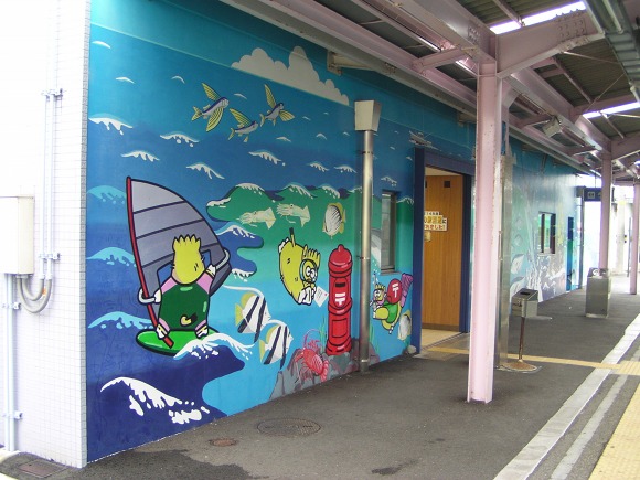기이타나베역이 관리하는 간이위탁역으로, 한때 미도리의 창구가 설치되어 있었고, 현재는 초록 창구가 영업 중이다. 특급 열차 운행 시에만 역무원이 개찰을 관리하며, 텍시아제 UT70형 간이 자동 발권기가 설치되어 있다.[1] 역사 홈 측면 벽에는 스사미 정의 명소와 명산을 소개하는 재미있는 일러스트 벽화가 있다.