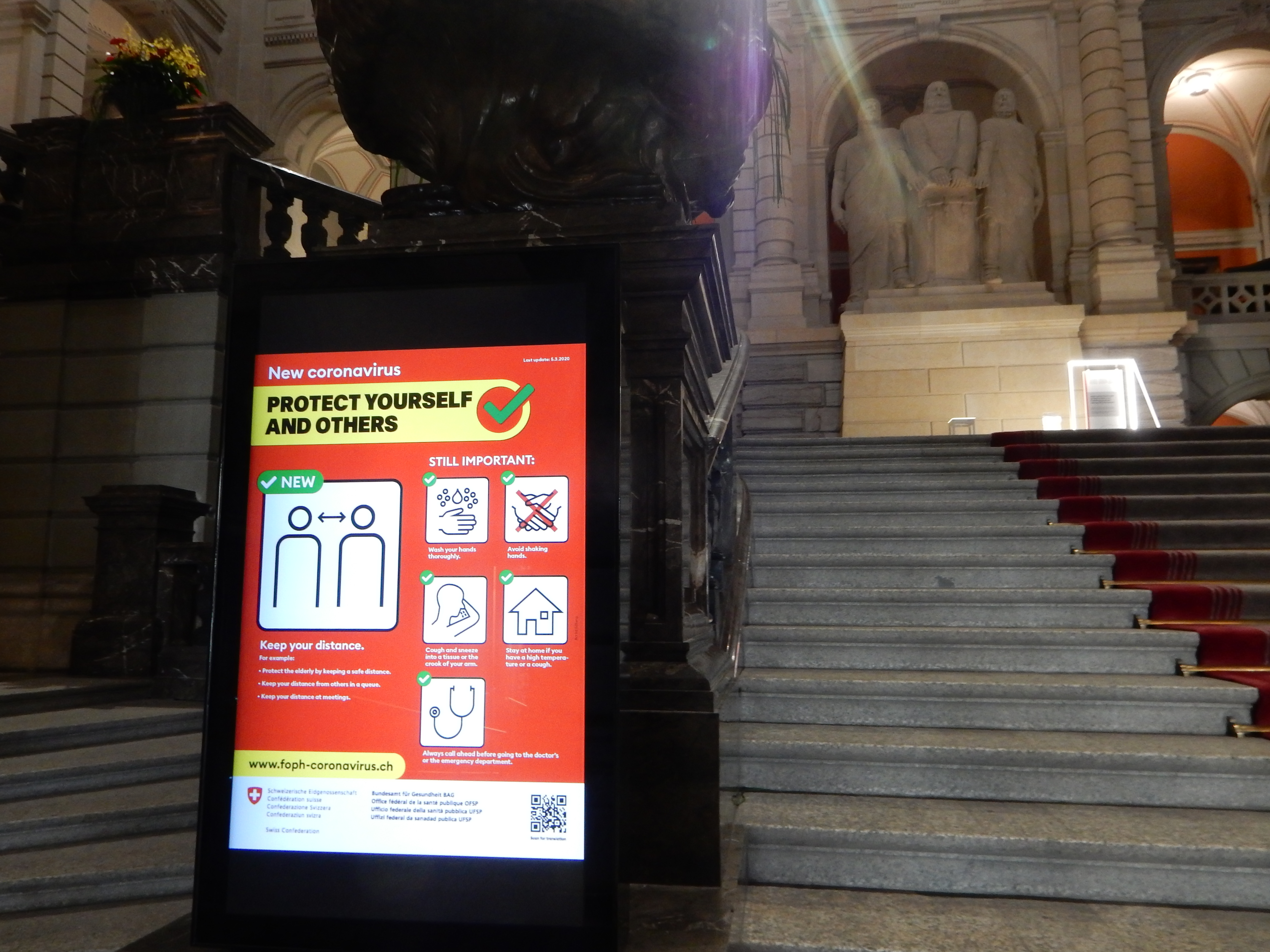 3월 16일, 스위스 연방 정부는 연방 전염병법에 따라 비상사태를 선포했다.[8]
