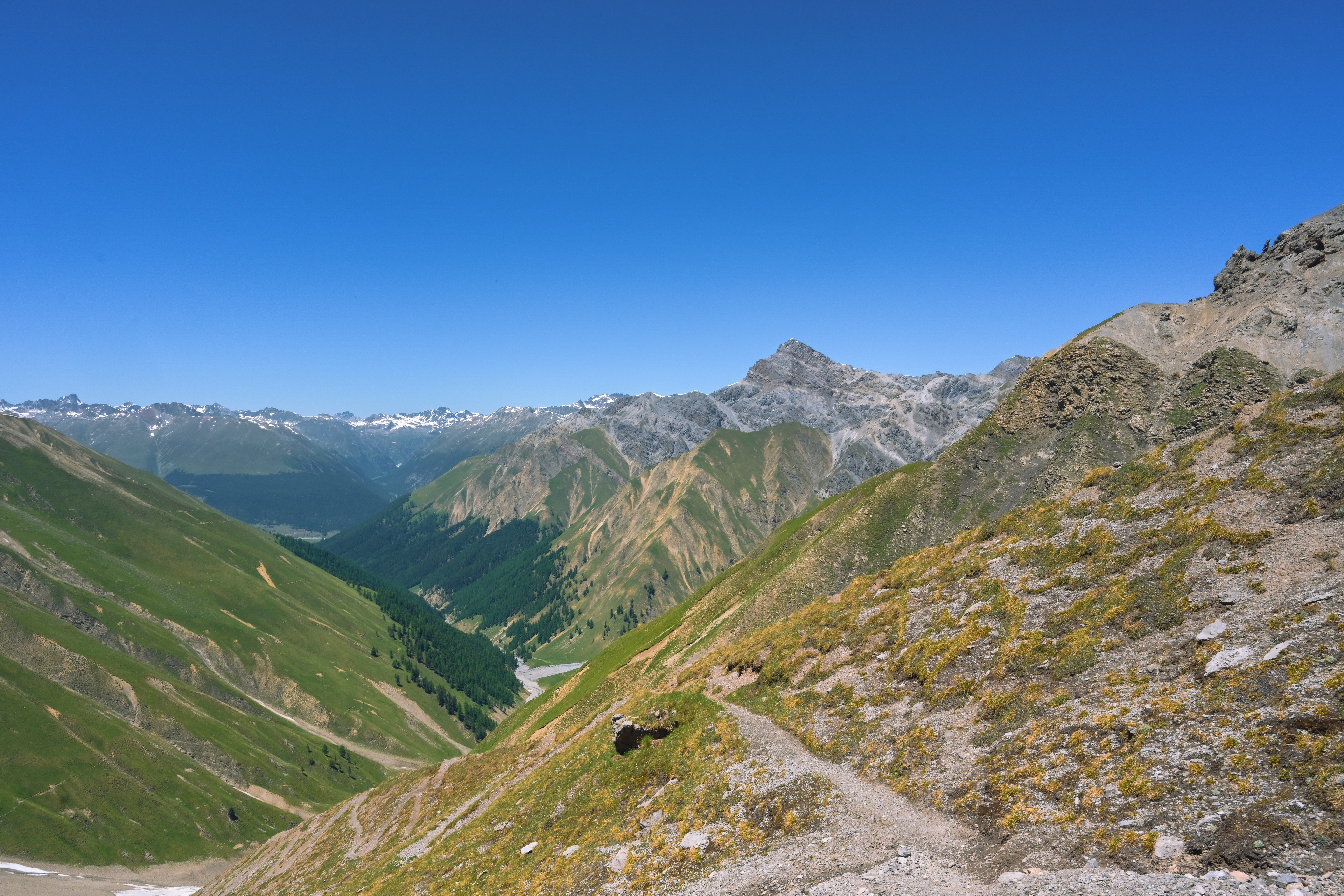 스위스 국립공원에는 21개의 번호가 매겨진 하이킹 코스가 있으며, 그중 3번과 4번은 고산 하이킹 코스이다. 4번 코스는 공원에서 가장 높은 봉우리인 피츠 콰터발스(3,165m) 정상으로 이어진다.[1]코스 | 길이 | ||