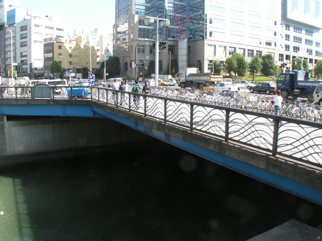 - 동일본 여객철도(JR 동일본)의 스이도바시역은 1906년9월 24일에 개업했다. 주오 본선 선로를 이용하지만, 주오·소부 완행선 열차만 정차한다. 특정 도구 시내 제도에 따라 "도쿄 도구 내" 및 "도쿄 야마노테선 내"에 속한다. 도쿄도 교통국의 역(A2번 출입구)은 외호리 거리의 횡단보도를 건너 약 100m 떨어져 있다.[26]