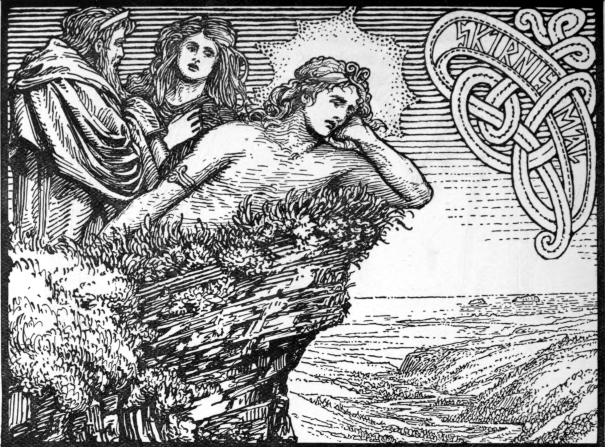〈스키르니르가 말하기를〉 서두 산문에서는 프레이가 요툰헤임에서 요툰 소녀 게르드를 보고 앓아눕게 된다. 시가의 첫 번째 시구에서 프레이의 아버지 뇨르드는 프레이의 하인 스키르니르에게 프레이에게 말을 걸어 보라고 하고, 스카디 또한 스키르니르에게 프레이가 왜 그렇게 속앓이를 하는지 물어보라고 한다.[58]