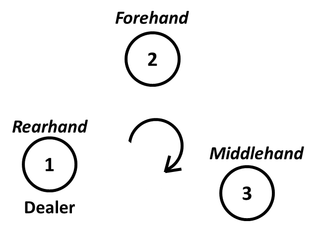 보통 "18, 20, 22, 23, 24, 27, 30, …"과 같이 숫자를 순서대로 제시하여 패를 추측당하지 않도록 한다. 중간수와 후수가 즉시 패스했을 경우, 선은 점수를 제시하지 않고 단독 플레이어가 될 수 있다. 세 명 모두 패스하면, 그 승부는 무효가 되고 딜러가 왼쪽 플레이어에게 카드를 돌리고 다음 승부로 넘어간다.