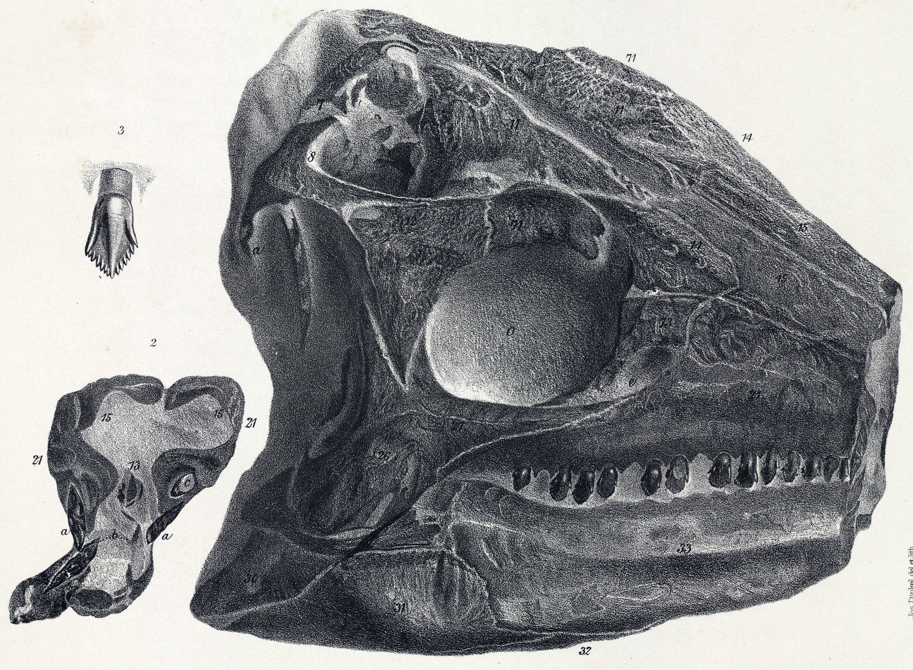 두개골 스케치. 기재자 리처드 오웬에 의한 것.