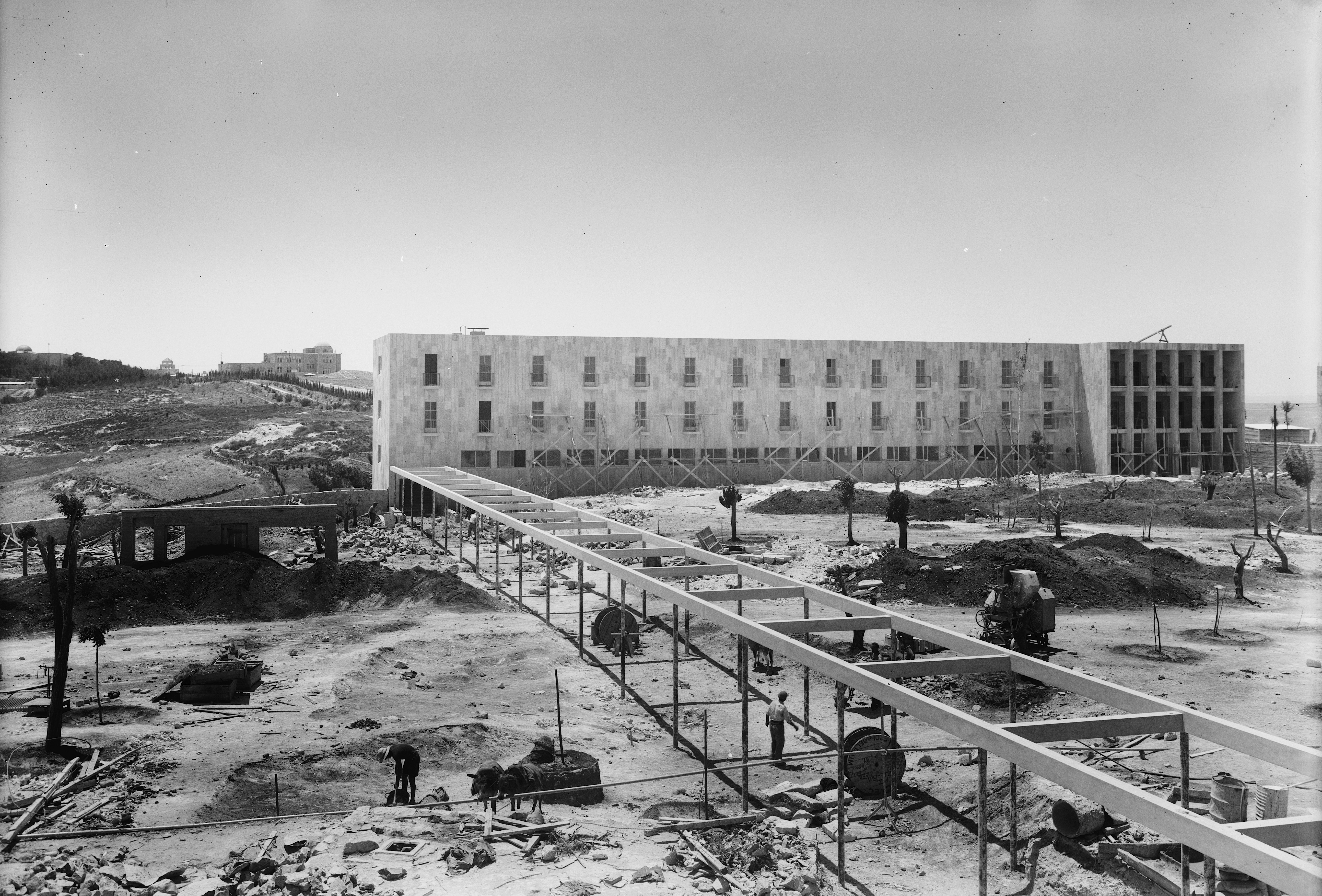 히브리 대학교의 스코푸스 산 캠퍼스는 1918년 그레이 힐(Gray Hill) 농장에서 구입한 부지에서 건설이 시작되었다. 1925년 헌정식에는 많은 고위 인사들이 참석했다.[16] 패트릭 게디스 경이 설계한 대학교 캠퍼스 디자인은 돔형 육각형의 대강당을 산비탈에 배치하여 다윗의 별을 연상시키고, 예루살렘 구시가지의 팔각형 바위 돔과 대조를 이루게 했다.[15] 이 계획은 실제로 구현되지 않았지만, 게디스는 현재 스코푸스 산에 있는 히브리 대학교 법학부인 대학교 도서관을 설계했다.[15]