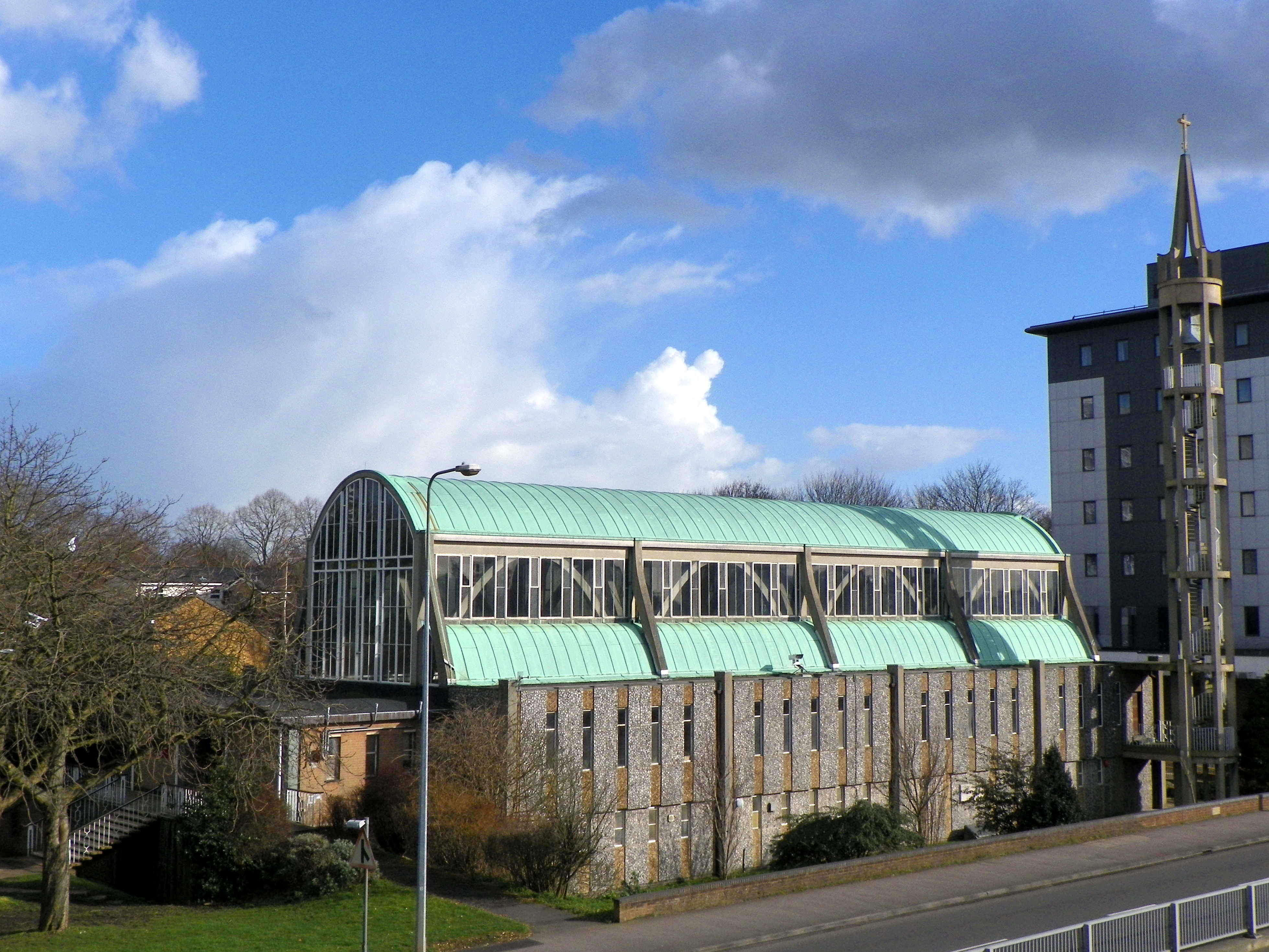 타운 가든 옆에 있는 세인트 앤드루 앤 세인트 조지 교회는 현대 교회 디자인의 한 예이며, 1976년부터 지하 묘지에 스티브니지 박물관을 수용하고 있다. 이 교회는 2급 건물로 지정되어 있다. 또한 제2차 세계 대전 이후 영국에서 건설된 가장 큰 교구 교회이기도 하다. 엘리자베스 여왕은 1956년 7월에 초석을 놓았으며, 1960년 11월 27일 강림절 일요일에 세인트 올번스 주교, 마이클 그레스포드 존스 주교의 봉헌식에도 참석했다. 프레임은 형틀에 콘크리트를 연속적으로 부어 만들어 교차하는 아치를 만들고 이음새가 보이지 않게 한다. 고제단 주변에는 12개의 퍼벡 대리석 기둥이 있으며, 외부 벽은 노르망디 조약돌로 덮인 패널로 마감되어 있다. 종탑에는 전기 음향 카리용의 스피커가 설치되어 있다. 앤드루 버턴의 인기 조각품인 '어반 엘리펀트'는 1992년에 의뢰되었다.
