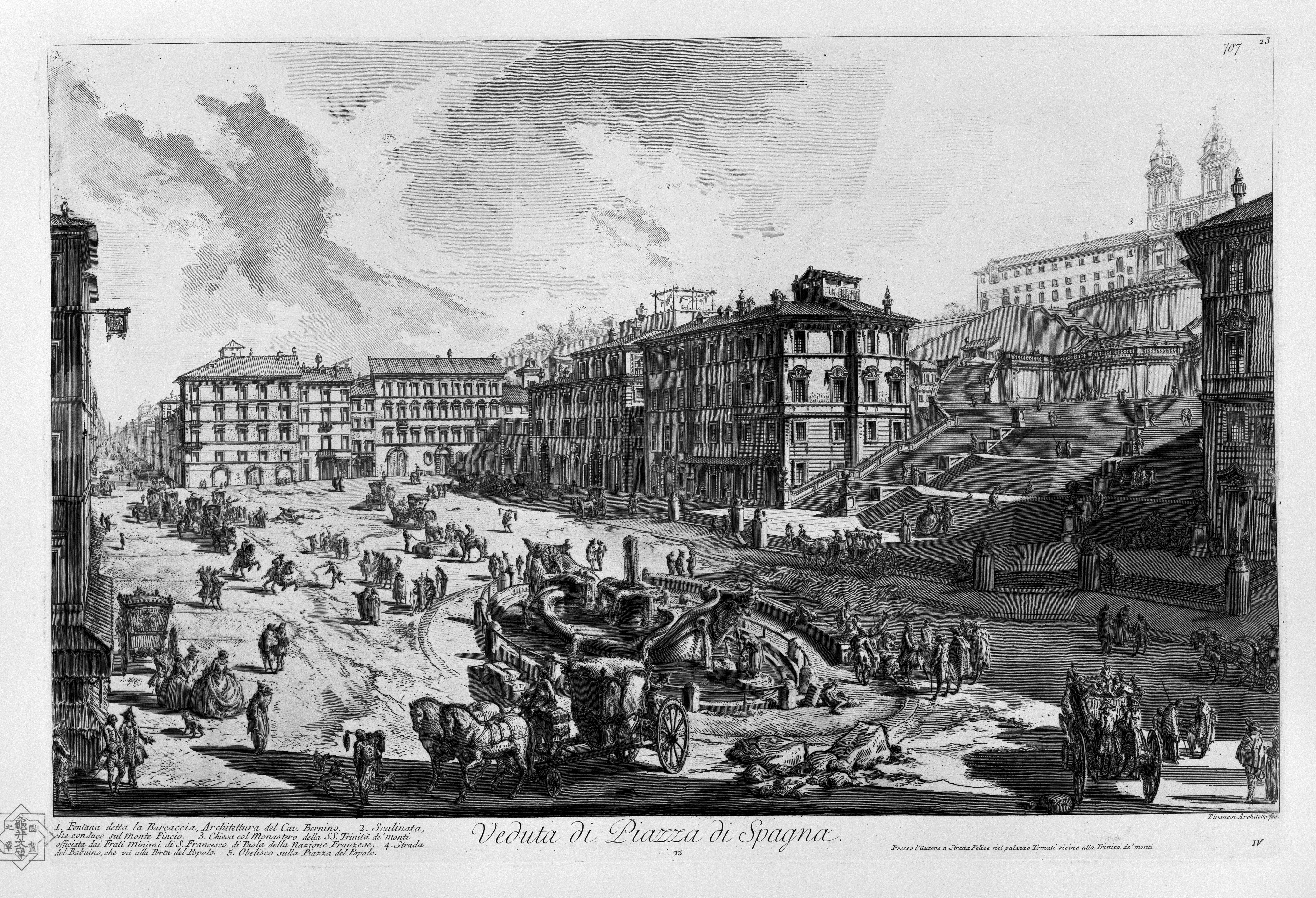 초기 바로크 양식의 분수인 바르카차 분수(Fontana della Barcaccia)''("작은 배 분수")가 광장 기슭에 있는데, 1627~1629년에 건설되었으며, 잔 로렌초 베르니니의 아버지인 피에트로 베르니니의 작품으로 여겨진다. 최근에는 베르니니가 장식에 참여했다고도 한다. 베르니니는 1623년부터 교황의 아쿠아 베르지네 건축가였다. 전설에 따르면 교황 우르바노 8세는 테베레 강의 홍수로 이곳에 배가 떠내려온 것을 보고 감명받아 분수를 설치했다고 한다.3. 2. 주변 명소
