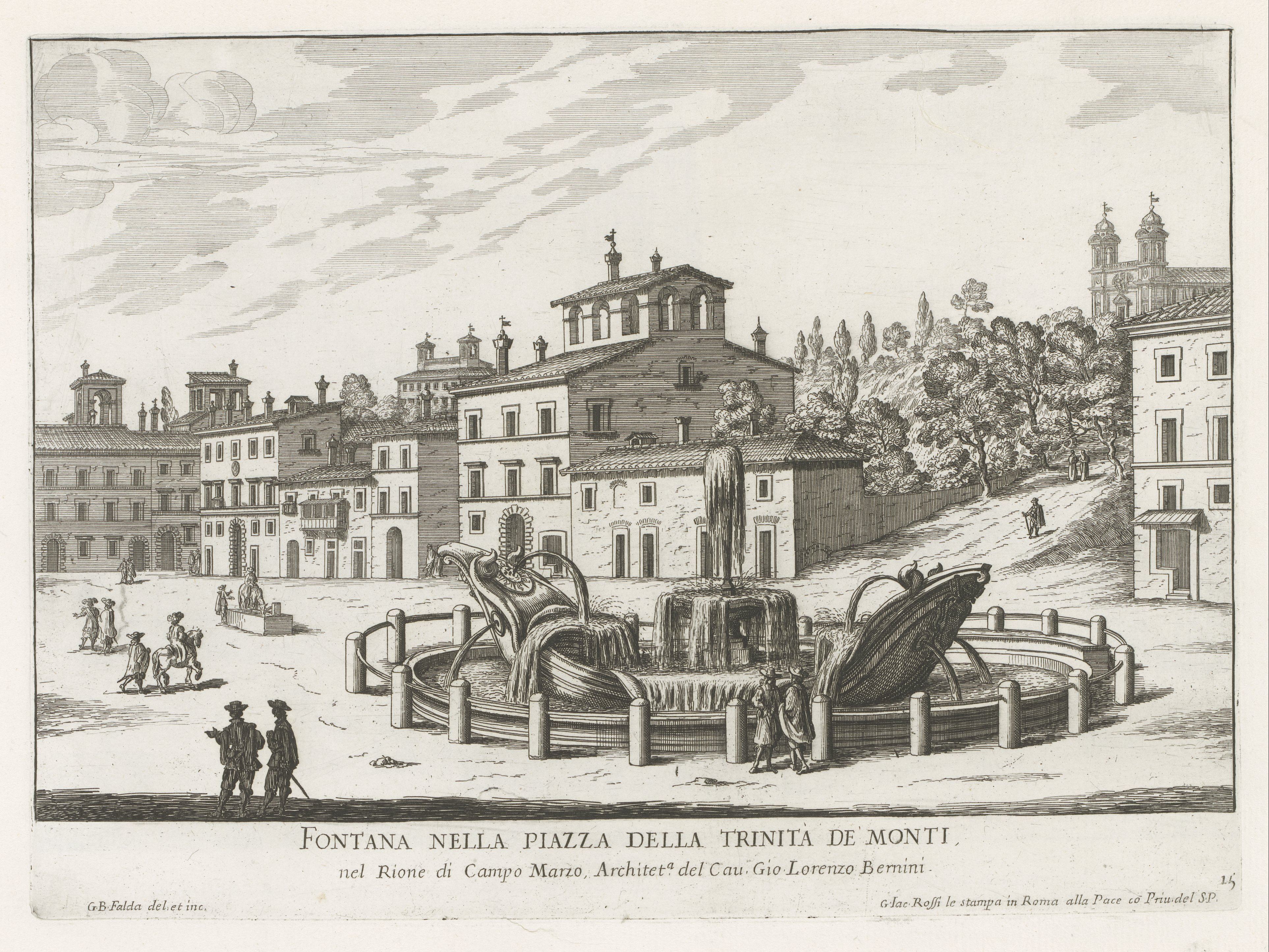 1717년에 열린 경쟁에서 프란체스코 데 산티스가 우승했지만, 알레산드로 스페키가 오랫동안 우승작을 냈다고 여겨졌다. 프랑스 측이 설계 과정에서 선호했던 건축가에 대해서는 알려진 바가 거의 없다. 그의 도면은 1726년 지롤라모 로시에 의해 루이 15세에게 헌정된 긴 헌사문과 함께 조각되었다.[3]