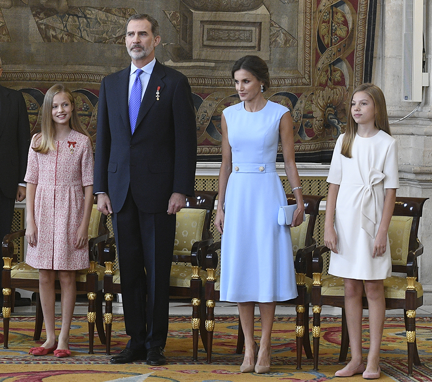 펠리페 6세 국왕과 레티시아 왕비의 장녀이자 스페인 왕위 계승 서열 1위인 아스투리아스 여공 레오노르는 2014년 아스투리아스 공녀 칭호를 받았으며, 3년간의 군사 훈련을 거쳐 립태자 선서식을 통해 미래의 스페인 여왕으로서의 위상을 확립했다. - 펠리페 6세 - 스페인 인판타 소피아