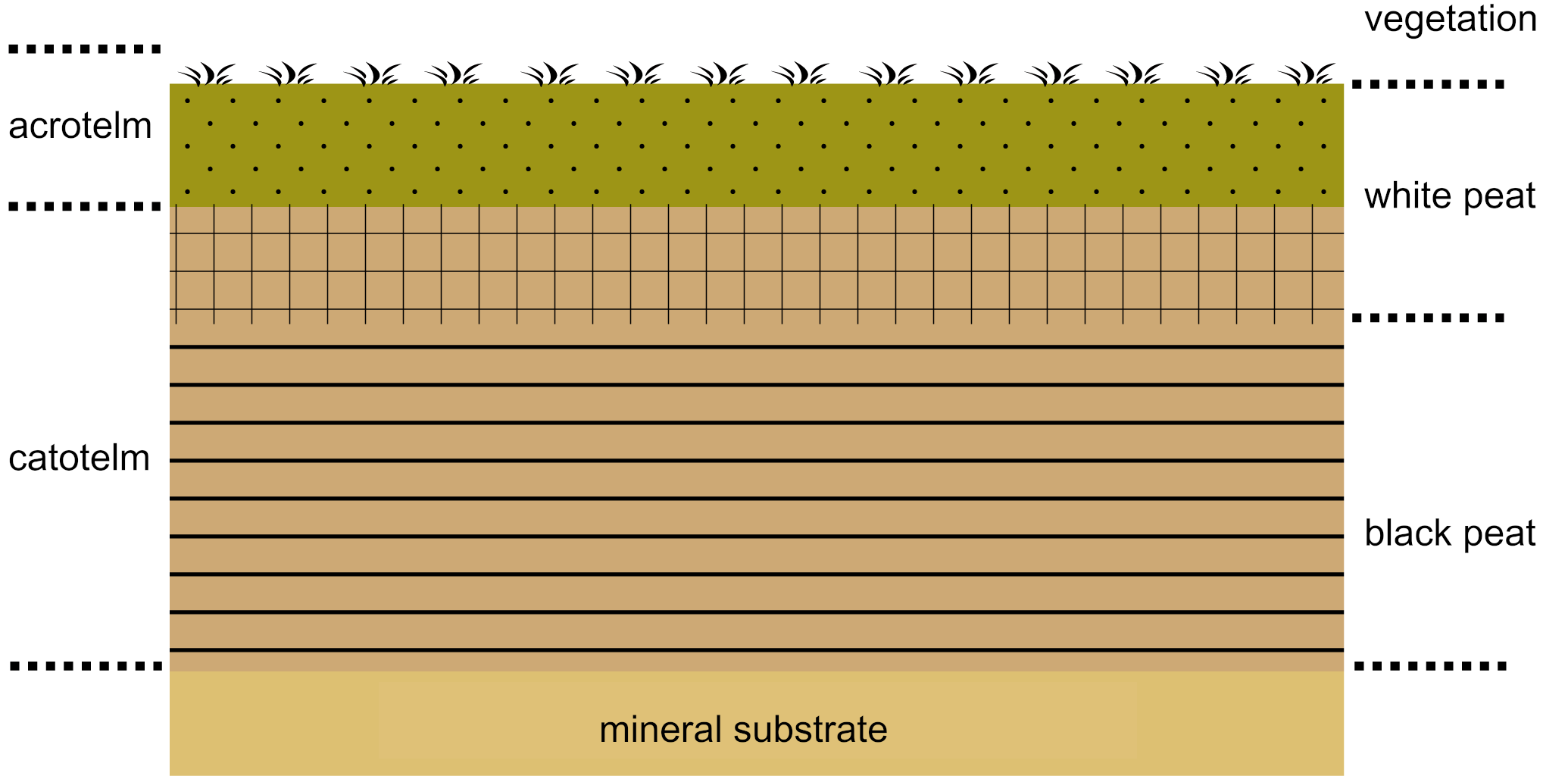 북독일 평원의 우량 습원은 일반적으로 검은색 이탄층(강하게 분해된 기저)과 흰색 이탄층(덜 분해된 상부)으로 나뉜다. 이러한 차이는 습원의 수문학적 변화로 인해 발생하며, 흰색 이탄은 검은색 이탄보다 습한 조건에서 더 빠르게 성장했다. 이는 기원전 1000년에서 500년경의 기후 변화(높은 강수량, 낮은 증발량)에 기인한다.