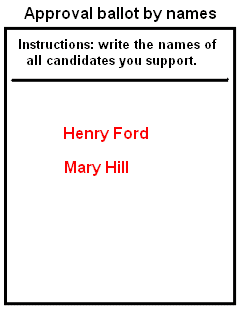 승인 투표에 사용되는 투표 용지의 형식에는 몇 가지 변형이 있다. 가장 단순한 형식은 백지 투표 용지로, 지지하는 후보자의 이름을 모두 자서(自書)하는 방식이다. 또한, 미리 후보자의 이름이 기재되어 있고, 이름 옆의 빈칸에 Yes/No와 같은 단어를 기입하는 형식이나, 마크 시트 형식의 투표 용지로 할 수도 있다. 참조