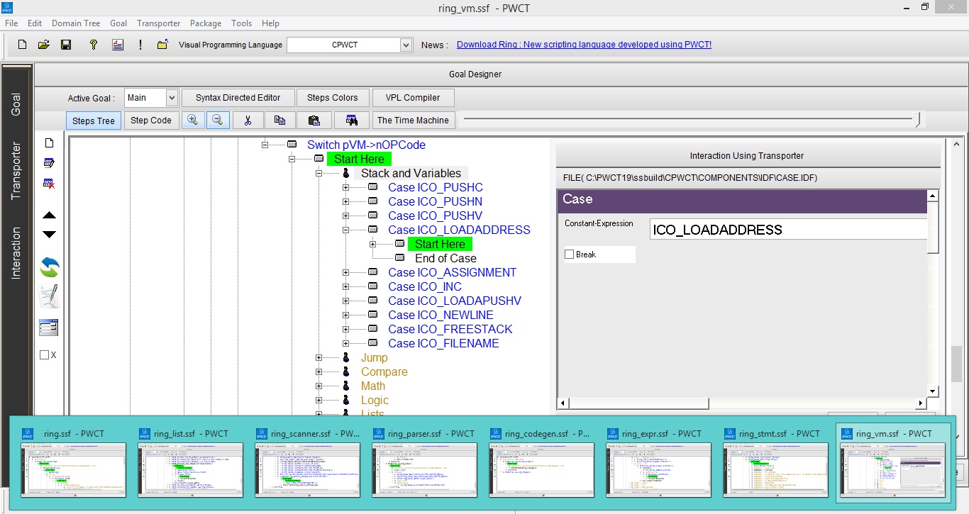 링 가상 머신 (VM) 구현에는 PWCT 시각적 프로그래밍 언어가 사용된다.