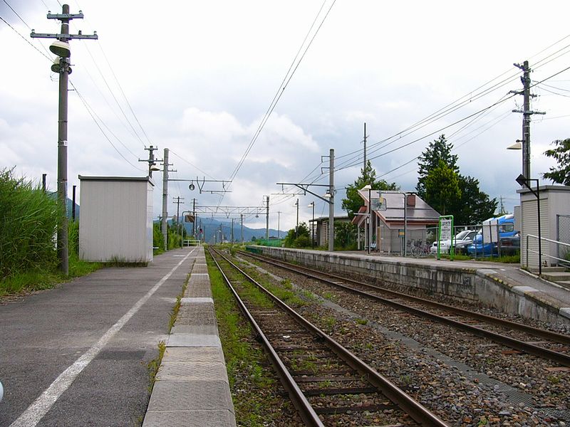 JR 동일본 오이토 선 쾌속(상행 1개 열차만 정차) 열차는 시나노오마치역 (23)에서 야나바역 (18) 방면으로 운행 시 이 역에 정차한다. 보통 열차는 키타오마치역 (22)과 이나오역 (20) 사이에 정차한다.