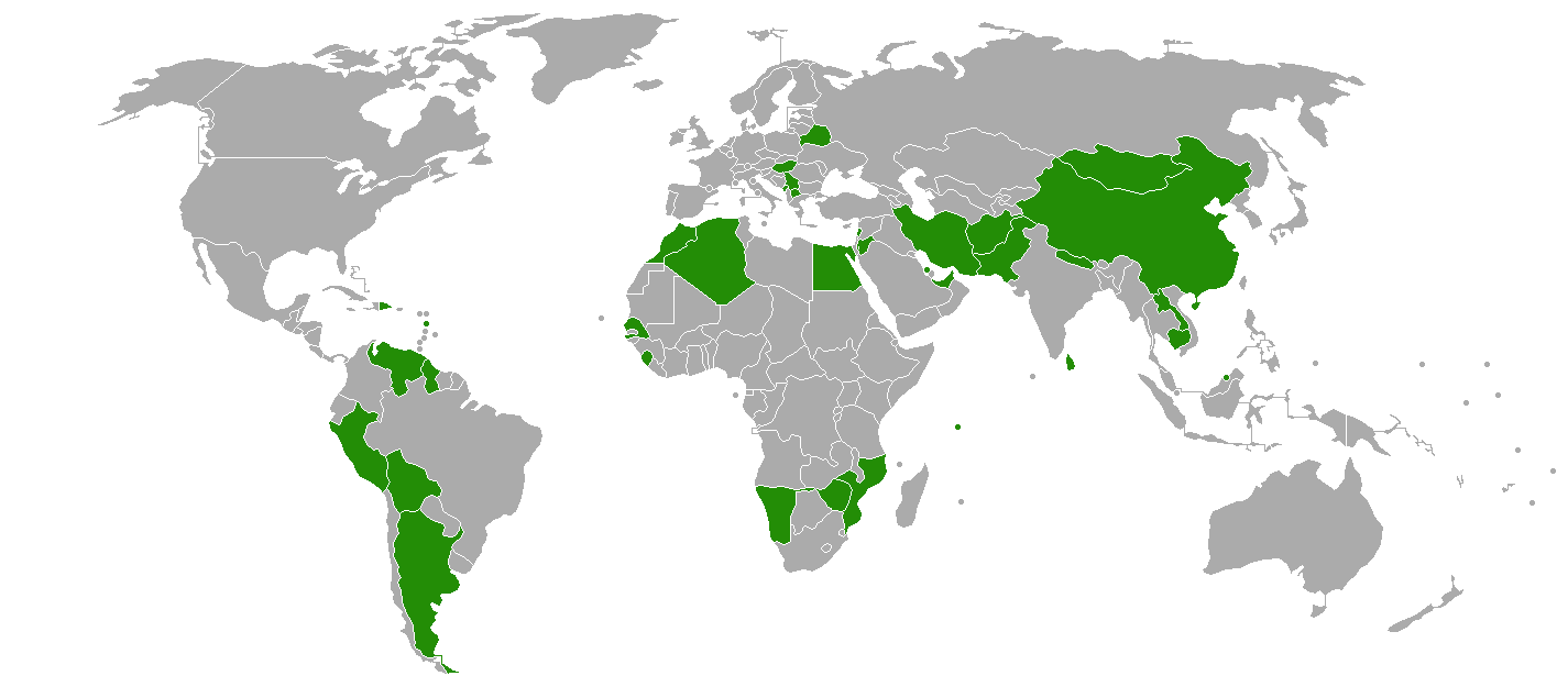 BBIBP-CorV를 사용하고 있는 국가를 녹색으로 표시하고 있다.