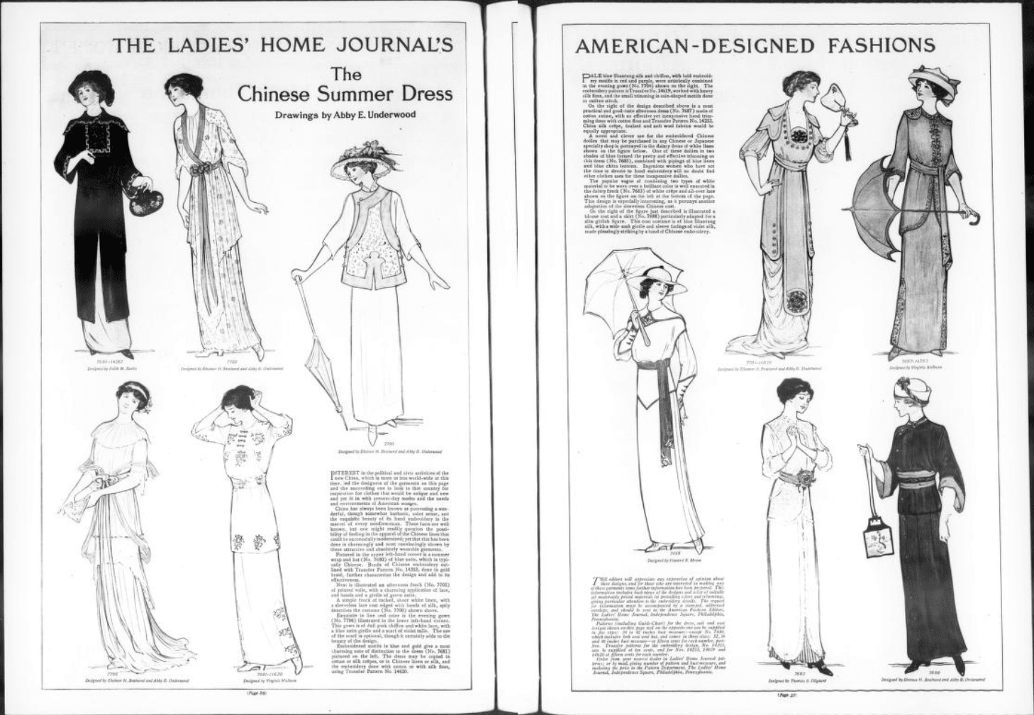 20세기 초, 유럽과 패션 디자이너들은 유럽 중심주의 패션 세계 밖의 중국 및 다른 국가들에서 영감을 얻고자 했다. ''보그'' 잡지도 중국이 세계 패션에 미학적 영감을 제공했다는 점을 인정했다.[38] 이 기간 동안 중국 모티프는 유럽 패션에서 인기를 얻었다.[39] 중국과 중국인들은 미국 패션에 소재와 미학을 공급하기도 했다.[38]