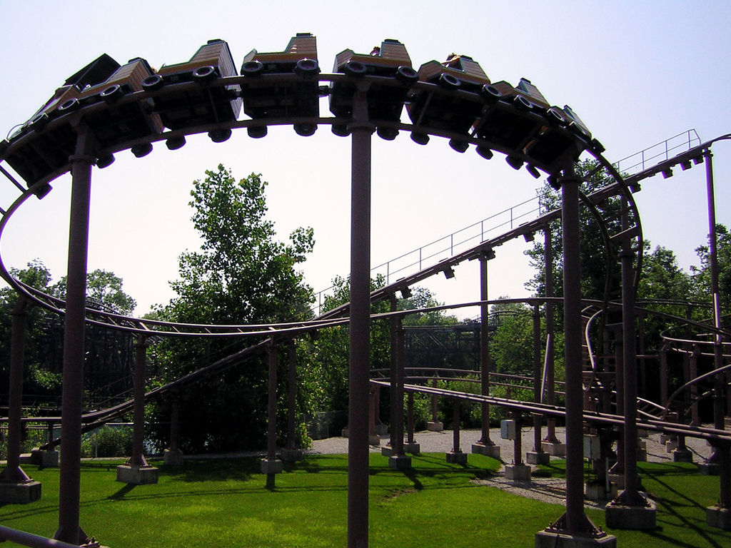 코크스크류 (Corkscrew) | ![]() | 1976 | 애로우 개발 (Arrow Development) | 미드웨이를 가로지르는 강철 롤러코스터로, 세계 최초로 3회의 역전을 선보였다. | 탑 스릴 2 미드웨이 | 5 |