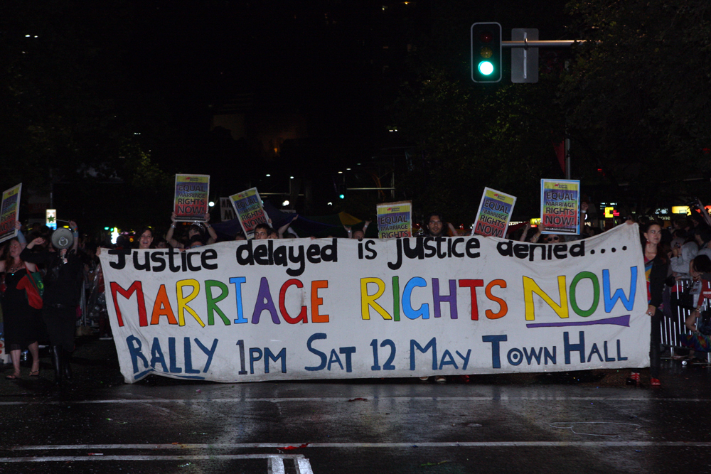 오스트레일리아 민주당 상원의원 나타샤 스토트 데스포자(Natasha Stott Despoja)[108], 노동당 상원의원 페니 웡(Penny Wong)[109], 오스트레일리아 하원 의원 타냐 플리버섹(Tanya Plibersek)[110], 앤서니 앨버니지(Anthony Albanese)[111], 시드니 시장인 클로버 무어(Clover Moore)[113] 등 여러 정치인들의 지지 또한 성소수자 인권 문제 해결에 있어 중요한 요소임을 시사한다. 2023년 앨버니지는 현직에서 마디 그라에 참가한 최초의 총리가 되었다.[111]
