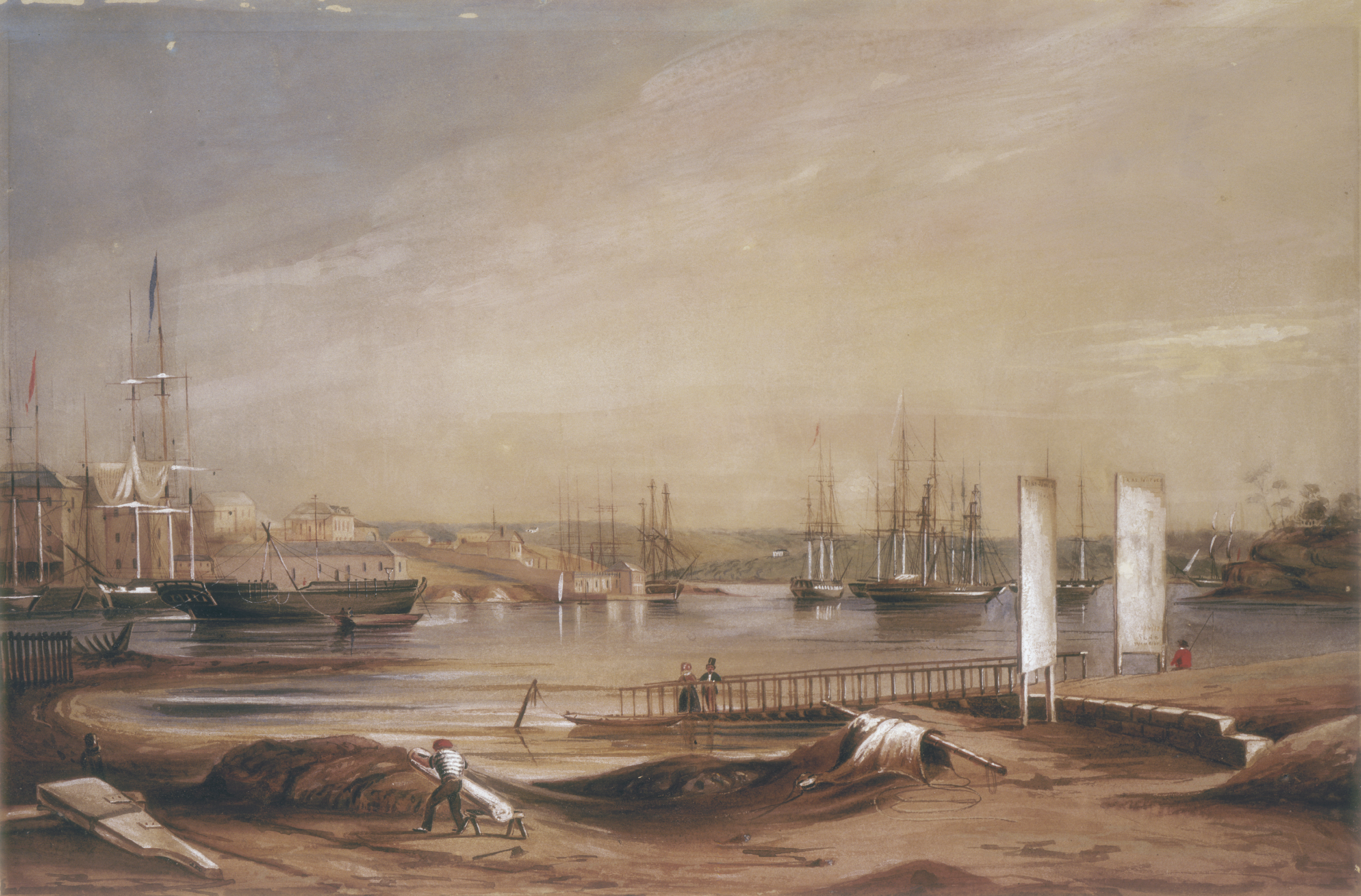 필립은 시드니 코브 남쪽에 있는 더 큰 만인 보타니 만(Botany Bay)에 정착지를 건설하라는 지시를 받았다.[6] 보타니 만은 1770년 탐험 항해 중에 제임스 쿡(James Cook) 중위가 발견했고, 쿡과 함께 항해했던 저명한 식물학자인 조셉 뱅크스 경(Sir Joseph Banks)이 정착지에 적합한 장소로 추천했다.[6] 그러나 필립은 보타니 만이 안전한 정박지(Anchorage (shipping))를 제공하지도 않고 신뢰할 수 있는 담수원도 없다는 것을 알게 되었다.[6] 시드니 코브는 곧 탱크 스트림(Tank Stream)으로 알려지게 된 담수 개울이 있어서 이 두 가지를 모두 제공했다.[6]
