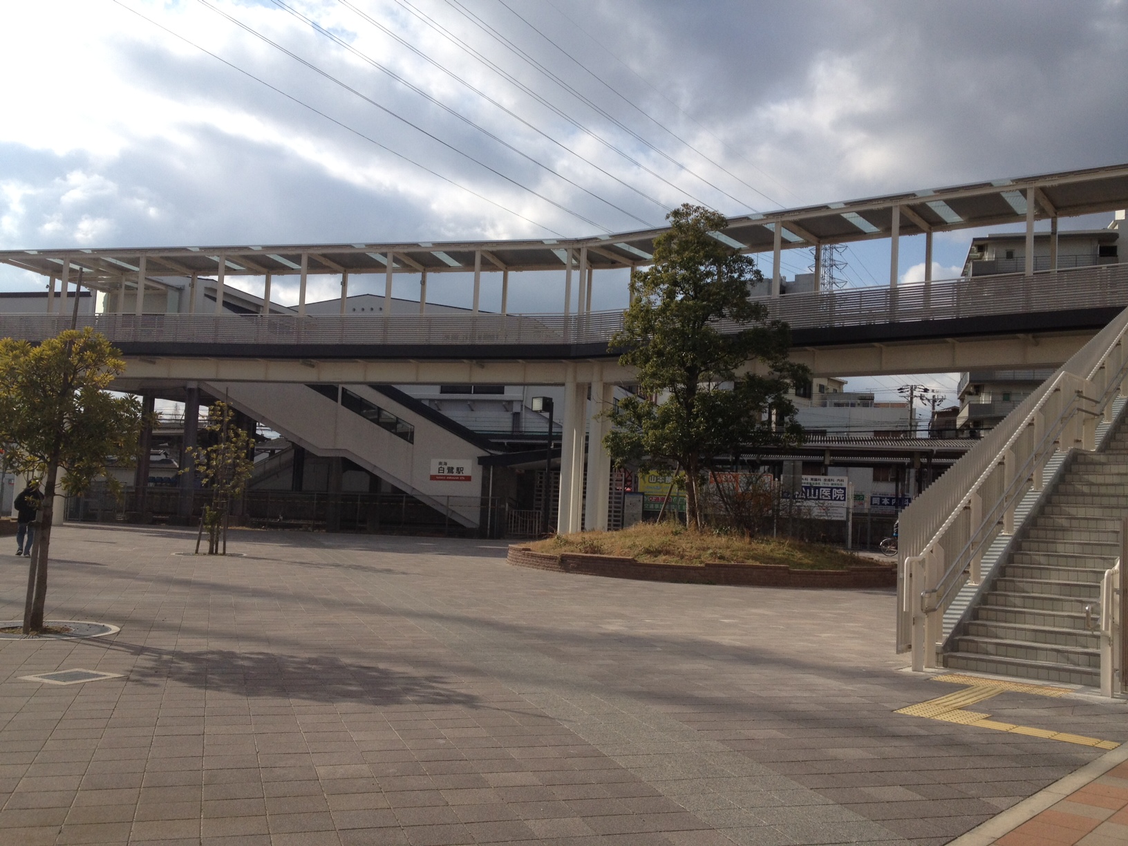 대피 설비를 갖춘 섬식 2면 4선 승강장을 가진 교상역이다. 난바 방면 평일 아침 출근 시간대 등에는 각역 정차 열차가 4번 승강장에서 대피하여 급행 등의 통과를 기다렸지만, 2017년 8월 26일 시간표 개정을 통해 기타노다역 연결로 변경되었기 때문에, 당역에서의 통과 대기는 거의 없어졌다. 다만, 이른 아침이나 낮 시간대 등에는 종전과 같이 통과 대기를 한다. 승강장 유효 길이는 8량이다.[7] 오사카부립 가나오카 고등학교 학생 전용 임시 개찰구가 설치되어 있다.2009년 4월 1일까지 배리어 프리 공사가 완료되어 엘리베이터가 가동되기 시작했으며, 여객 안내 사인도 일신되었다.