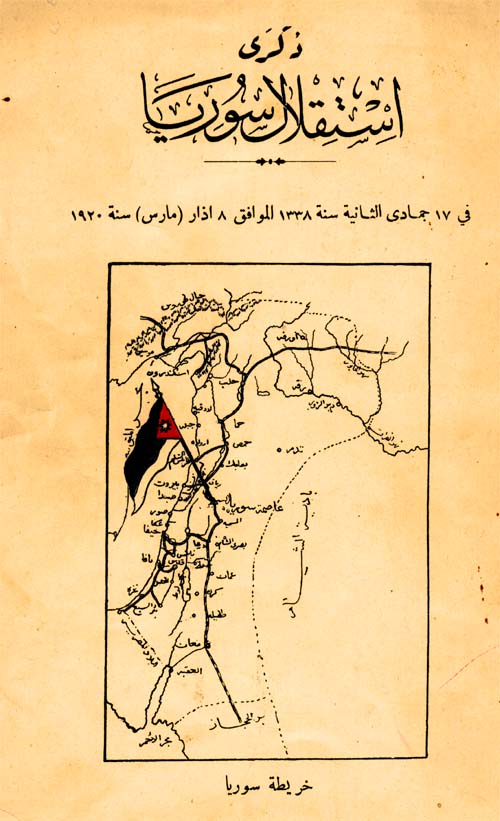 제1차 세계 대전 이후 오스만 제국의 영토는 영국, 프랑스, 아랍 연합군에 의해 점령되었고, 점령 적지 행정부(OETA)가 설치되어 군정이 실시되었다(1917~1920년). 이 시기 아랍 민족주의 운동이 고조되면서 1920년 3월 8일, 하심 왕조의 시리아 아랍 왕국이 탄생했다. 이 국가는 시리아 전 지역에 대한 영유권을 주장했으나, 실제로는 OETA 동부 내륙 지역만을 통치했다.[34]