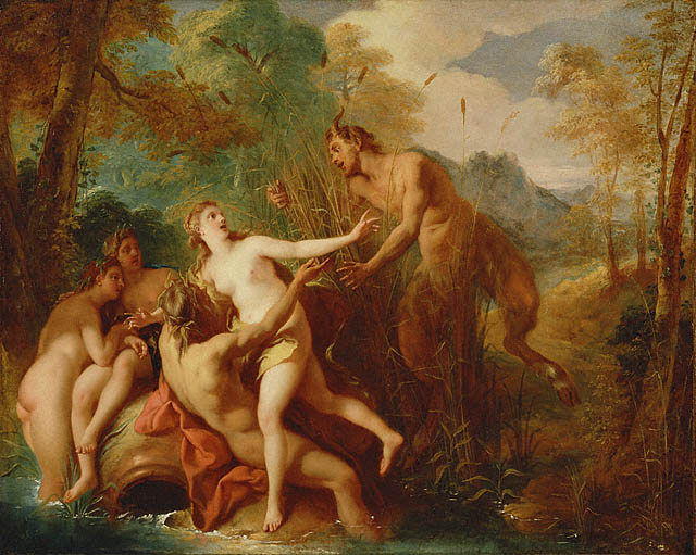 ''판이 시링크스를 쫓는 모습'' 이그나츠 엘하펜, c. 1690–1695, LACMA.