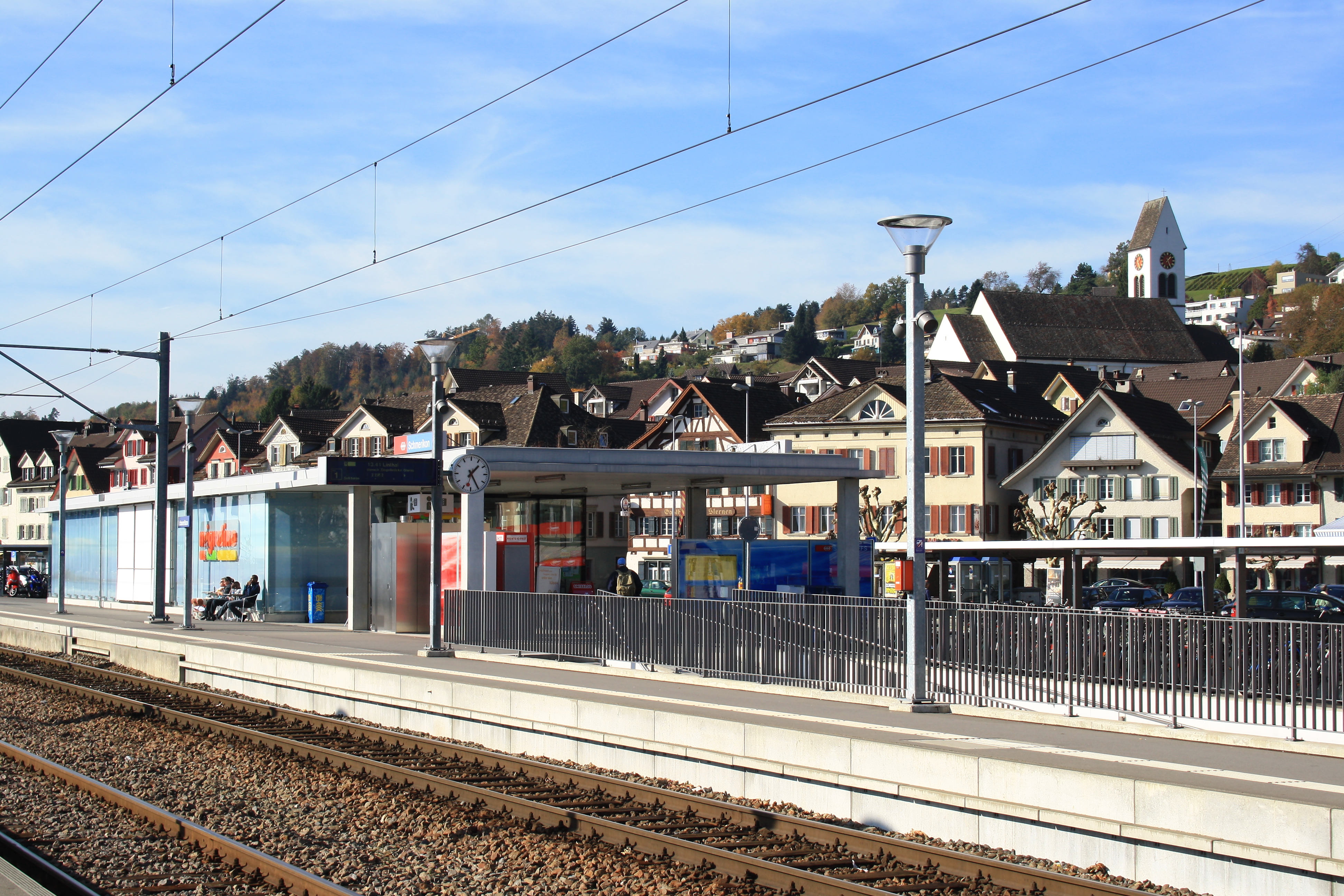 '''시메리콘역'''은 라퍼스빌과 장크트갈렌을 통해 루체른과 로만스호른을 연결하는 지역 간 포어알펜 익스프레스와 라퍼스빌에서 린탈까지 레기오 서비스를 제공한다. 두 열차 모두 매시간 운행되며, 합쳐서 라퍼스빌까지 30분 간격으로 운행된다.[32][7]