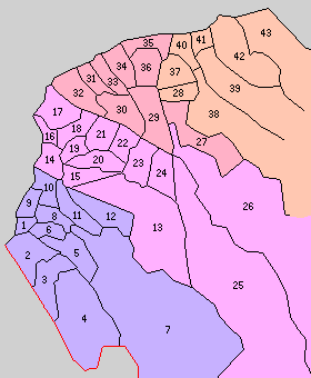 1889년 (메이지 22년) 4월 1일 - 정촌제의 시행에 의해 다음과 같은 정촌이 발족. (6정 37촌)