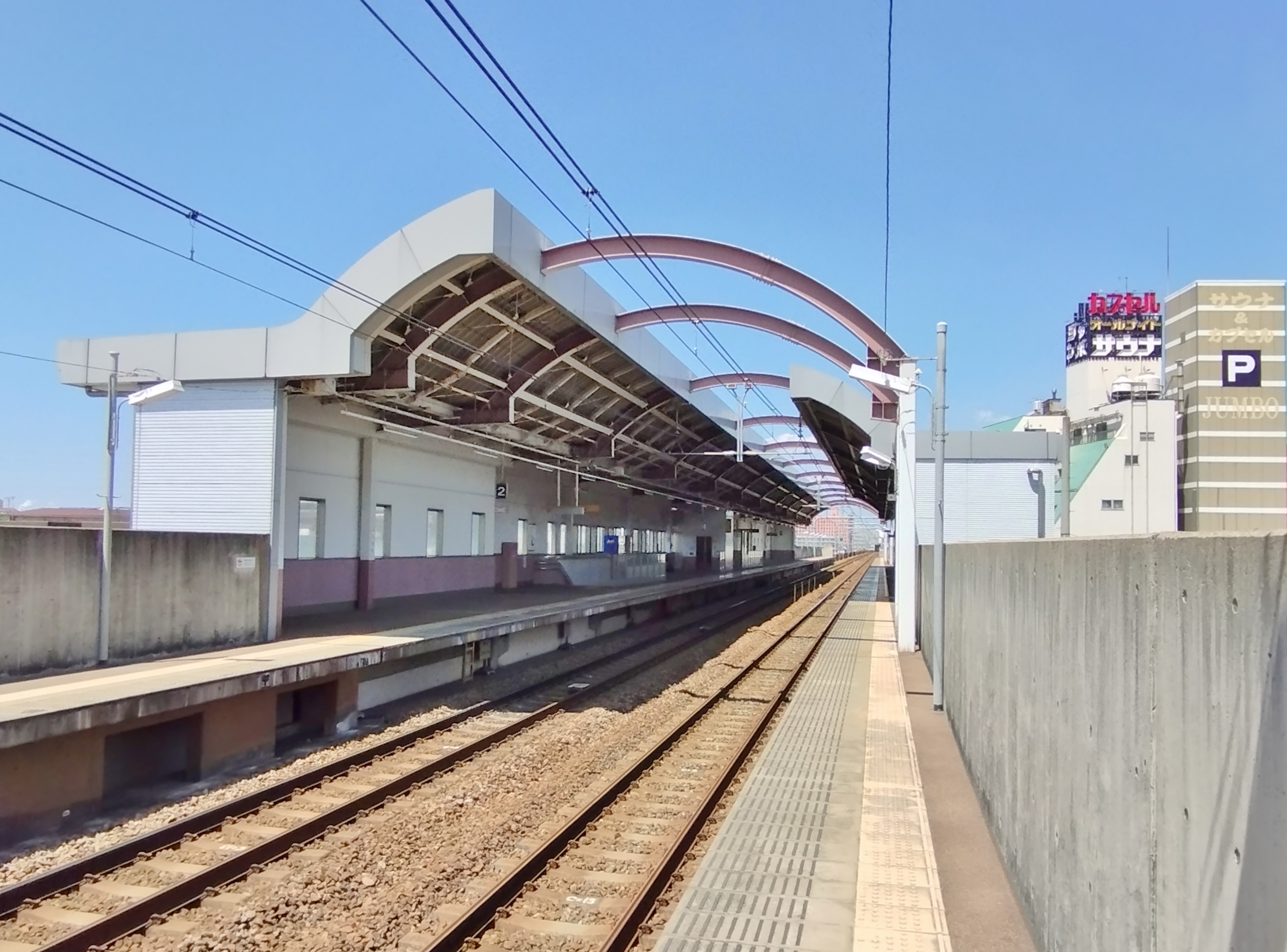 역간 거리 | 다이도초 방향: 0.8km 나와 역 방향: 1.4km |