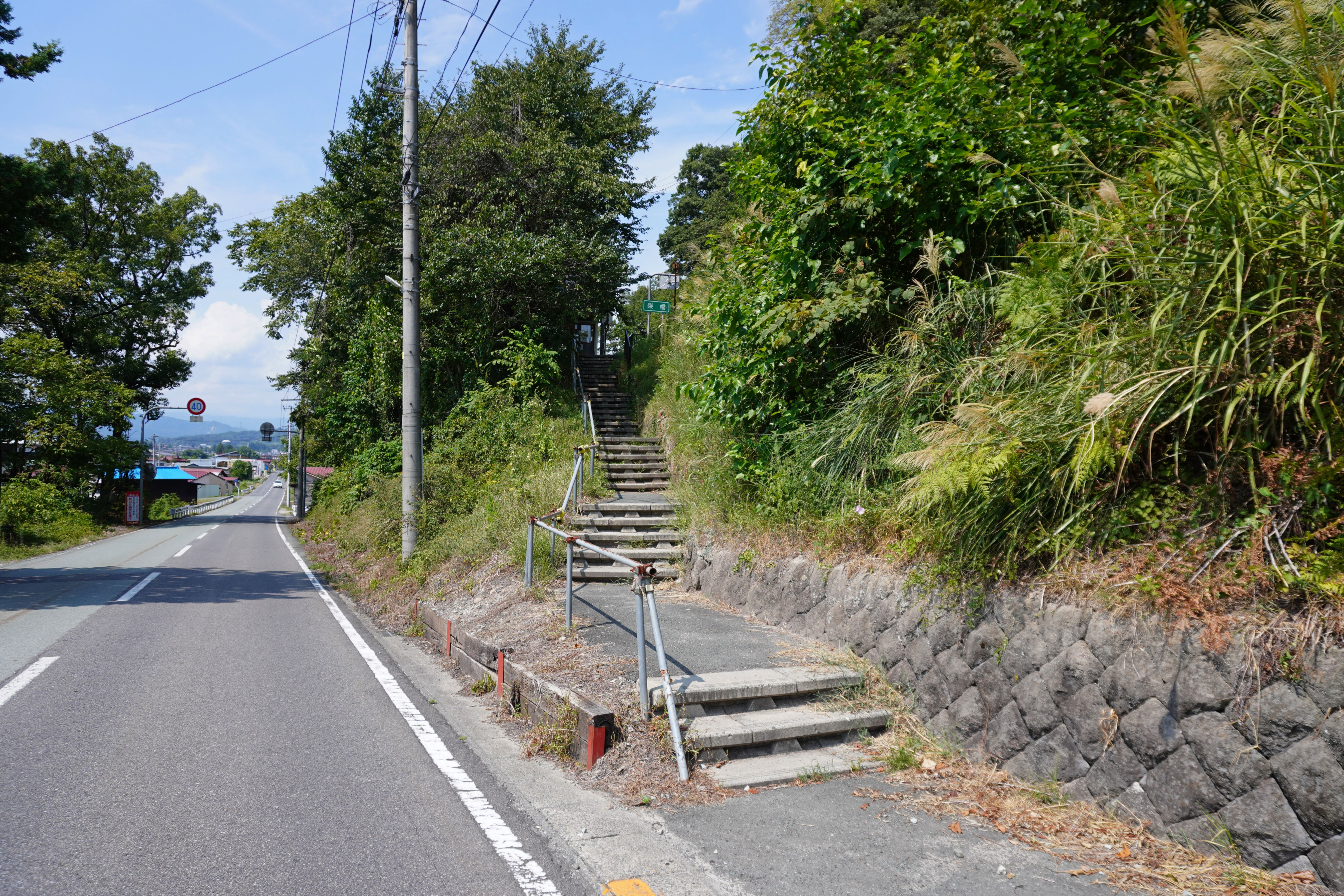 플랫폼에서는 가파른 계단으로 현도로 내려간다.