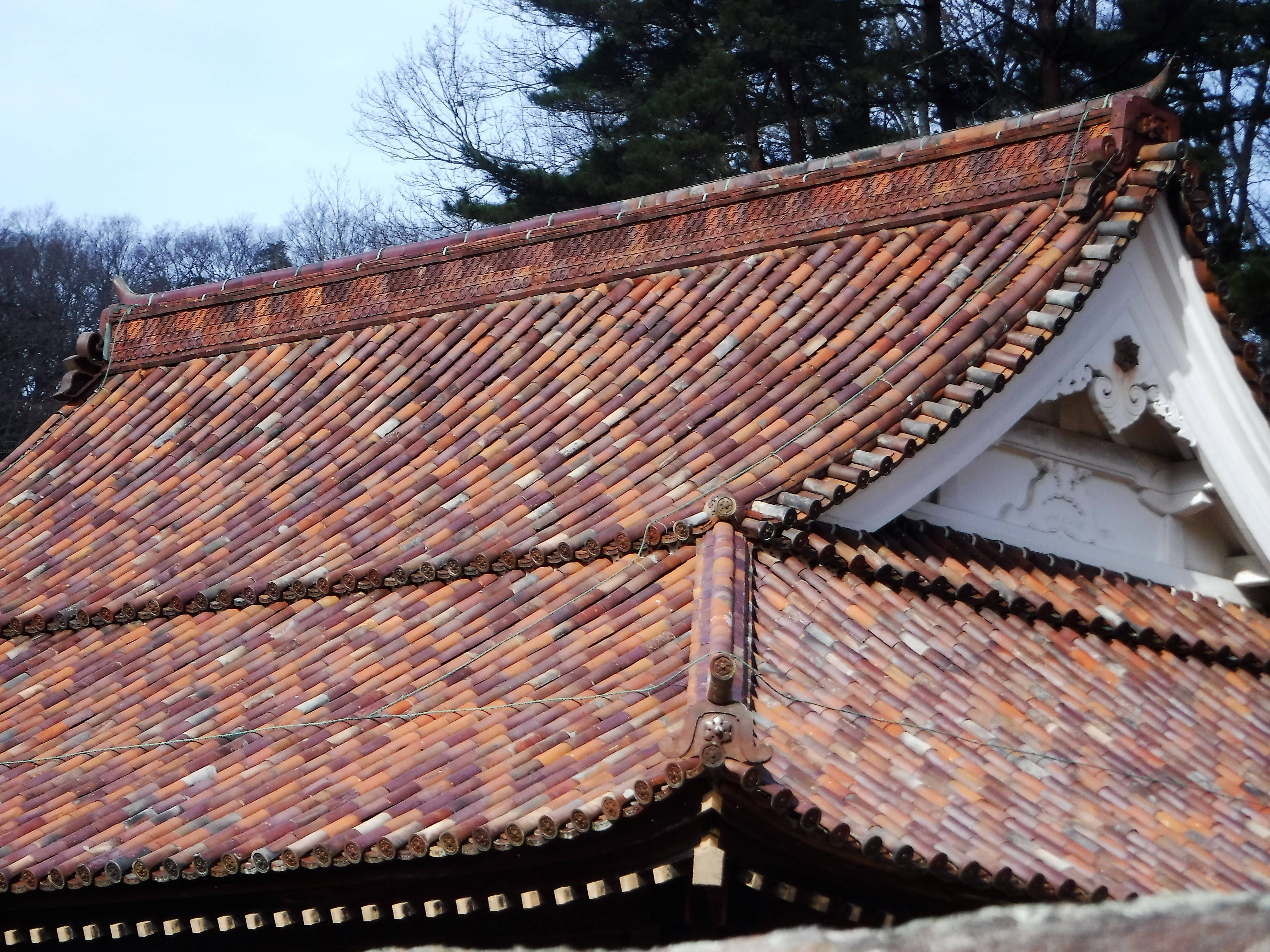 건축에 사용된 구조적 세심함도 엿볼 수 있다. 지붕 기와는 3겹으로 겹쳐져 있어 윗 기와가 깨지더라도 빗물이 천장으로 새어 들어가지 않도록 설계되었다. 각 지붕 기와에는 서로 다른 상징이 새겨져 있는데, 강당 기와에는 "여섯 잎" 문장이, 시즈타니 신사에는 이케다 씨족을 상징했던 "제비꼬리" 문장이, 공자 묘에는 "학문의 자유"를 의미하는 상징이 있다.