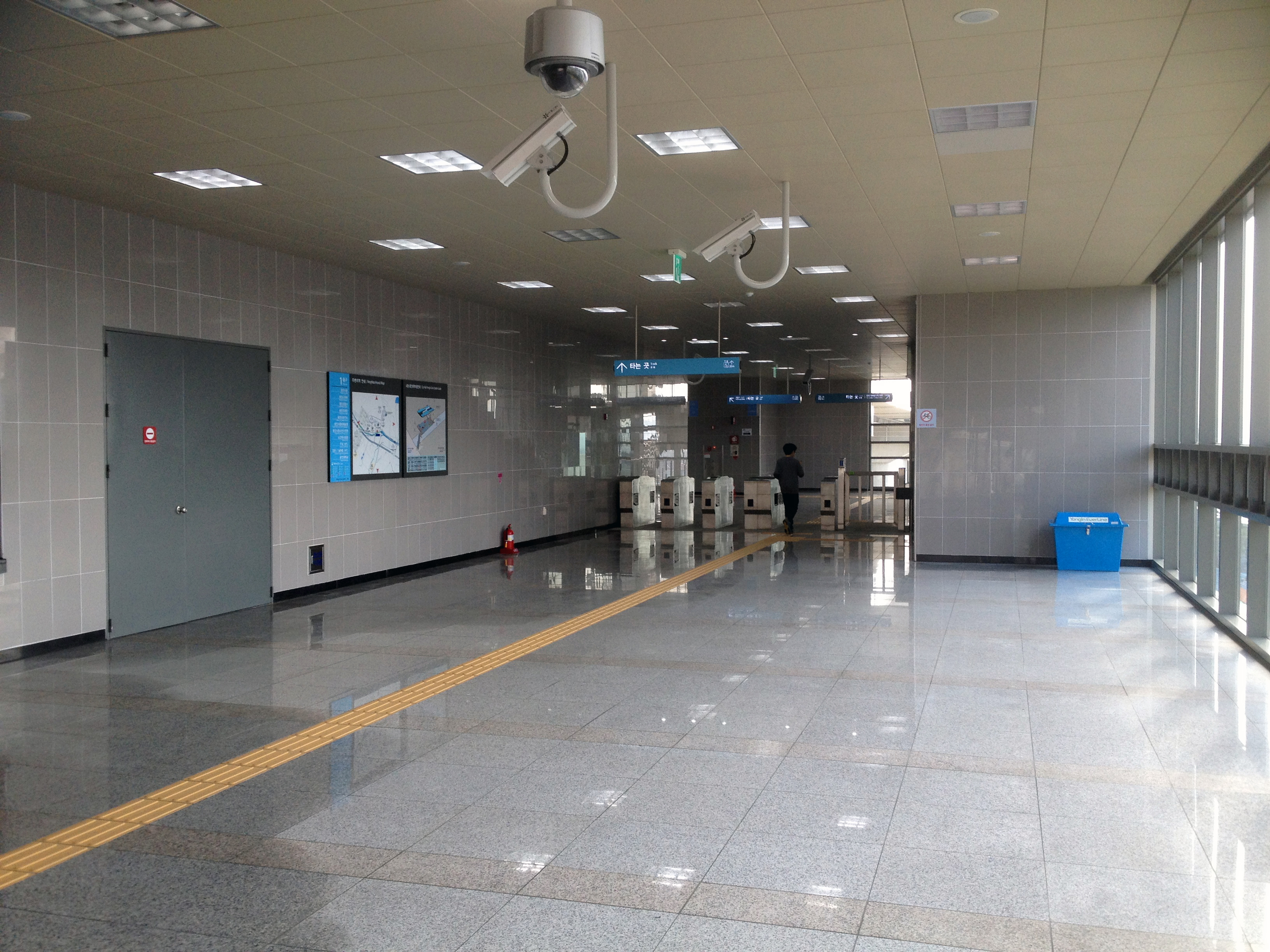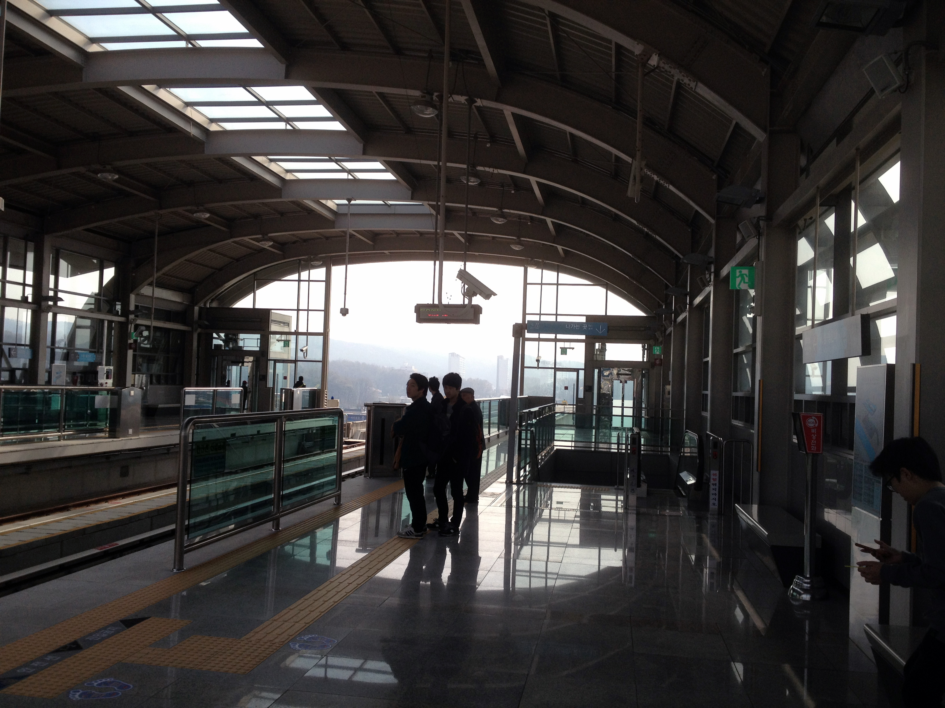 시청·용인대역은 2면 2선의 상대식 승강장을 갖춘 고가역이다.