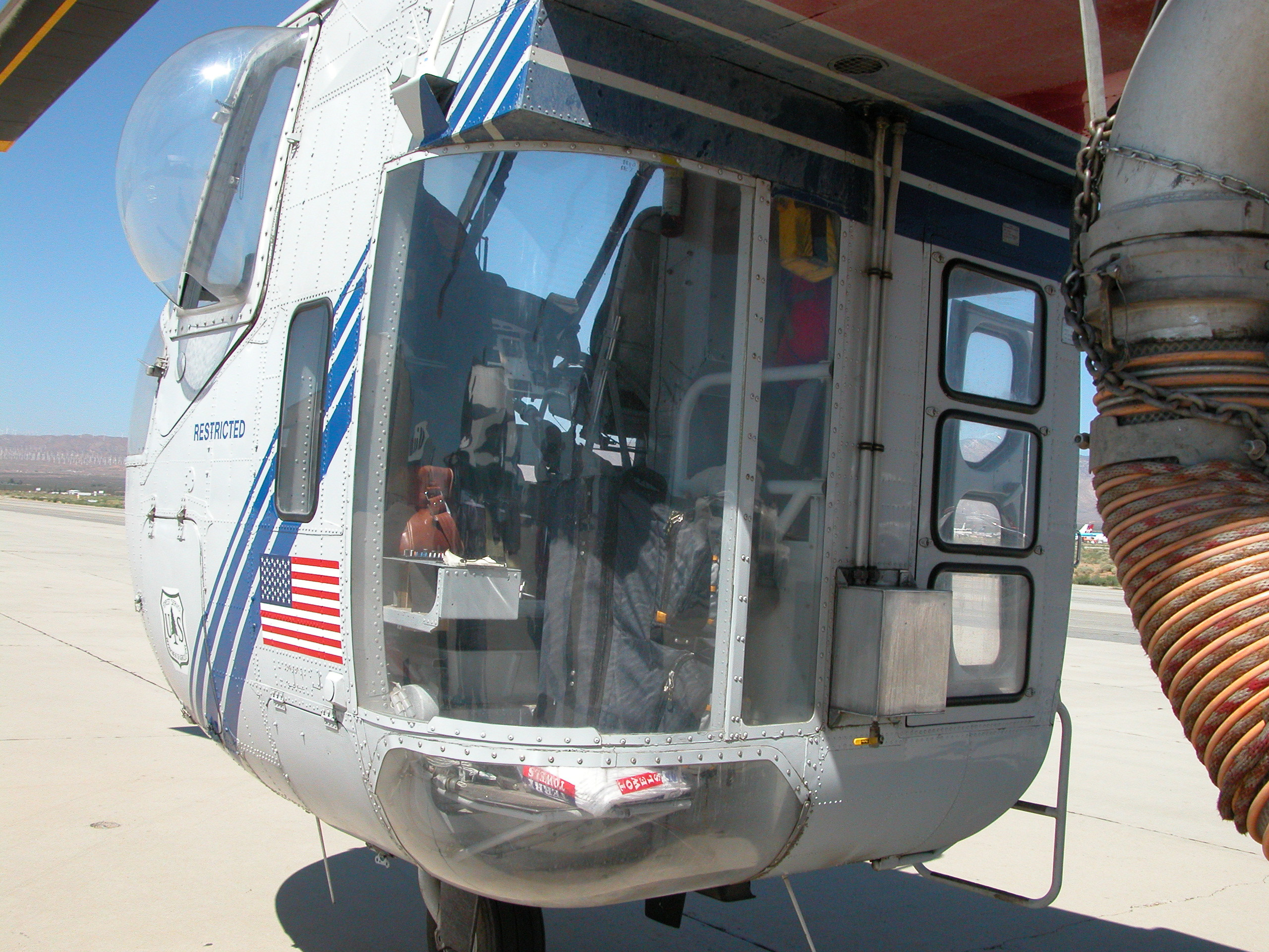 S-64는 후방 파일럿 조종석이 달린 세계최초의 기중기 헬리콥터이며 후방조종석에 앉은 조종사는 헬기에 매달린 자재를 육안으로 확인하면서 화물을 정확한 곳에 위치시키는 일을 한다.