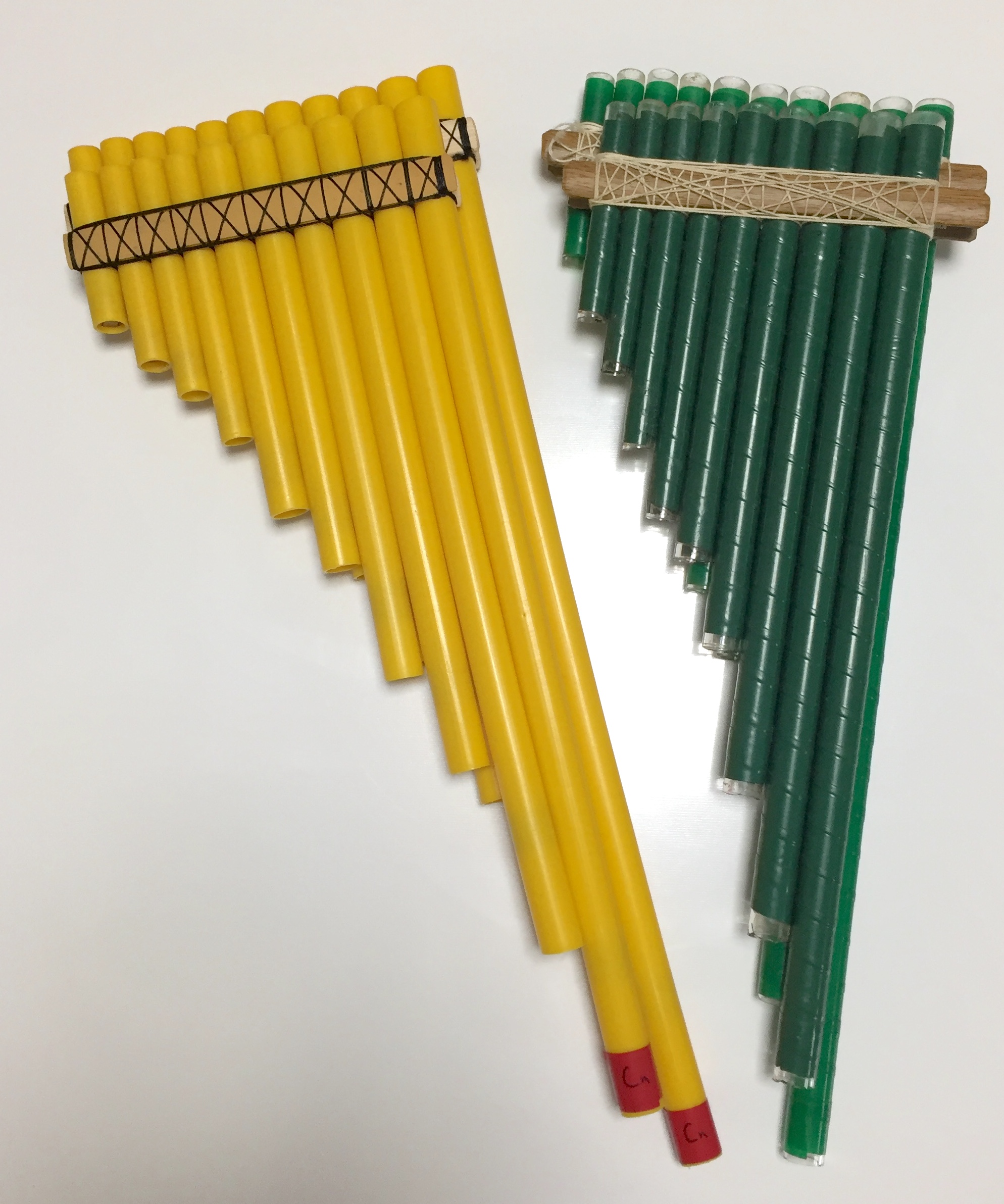 갈대 및 대나무 외에도 아크릴, 플라스틱과 같은 수지, 스테인리스강, 알루미늄 등의 금속, 나무, 동물의 뼈, 돌, 빨대 등도 사용된다.[4]