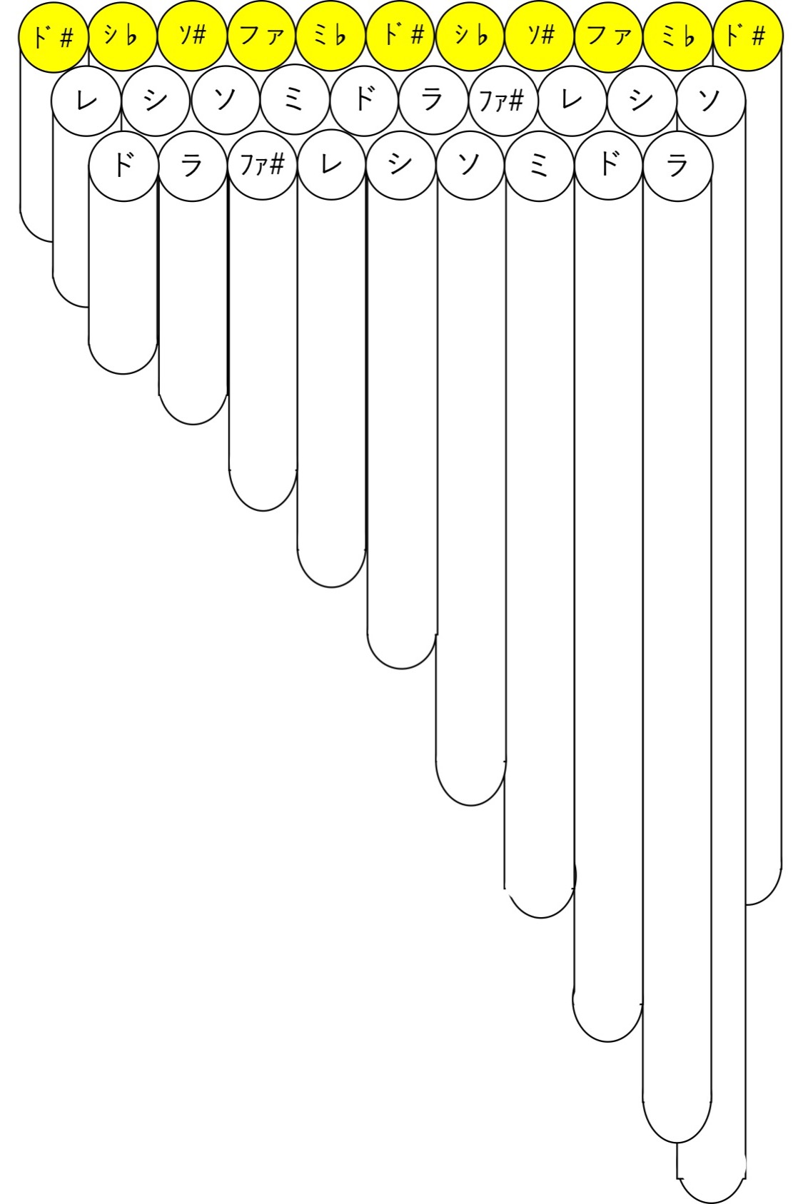 안타라 | 5음 음계(펜타토닉 스케일) 배열의 한 줄 관. 글리산도 음색이 유려. | 3열 크로매틱의 반음관과 유사한 배열 (A♭m/B조) | |