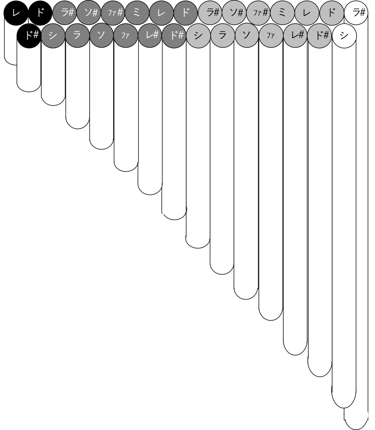론다도르 | 옥타브 차이의 펜타토닉 스케일 2종을 번갈아 배치한 1열 관. 에콰도르 포클로레에 주로 사용. | 독특한 선율 |