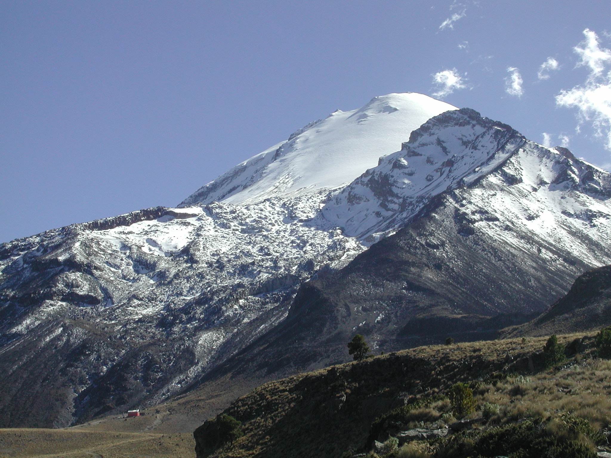 포포카테페틀산은 "연기 나는 산"이라는 뜻의 나와틀어에서 유래된 이름으로, 멕시코에 위치한 73만 년 역사의 활화산이자 멕시코에서 가장 활동적인 화산 중 하나이며, 1519년 이후 15차례 이상 분화 기록이 있고 1993년부터 현재까지 지속적인 분화 활동을 보이는 5,450m 높이의 성층 화산이다. - 푸에블라주의 지형 - 동시에라마드레 산맥