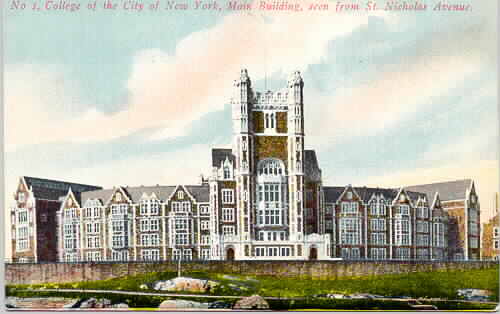 최고의 사립학교가 개신교 엘리트 자녀에게만 제한되었던 시절, 수천 명의 훌륭한 인물들(유대인 학생 포함)이 시티 칼리지에 다녔다. CCNY의 뛰어난 학문적 성과와 노동자 계층 학교로서의 지위는 "하버드 오브 더 프롤레타리아트", "가난한 사람들의 하버드",[33] 그리고 "허드슨 강의 하버드"라는 칭호를 얻게 했다.[34]