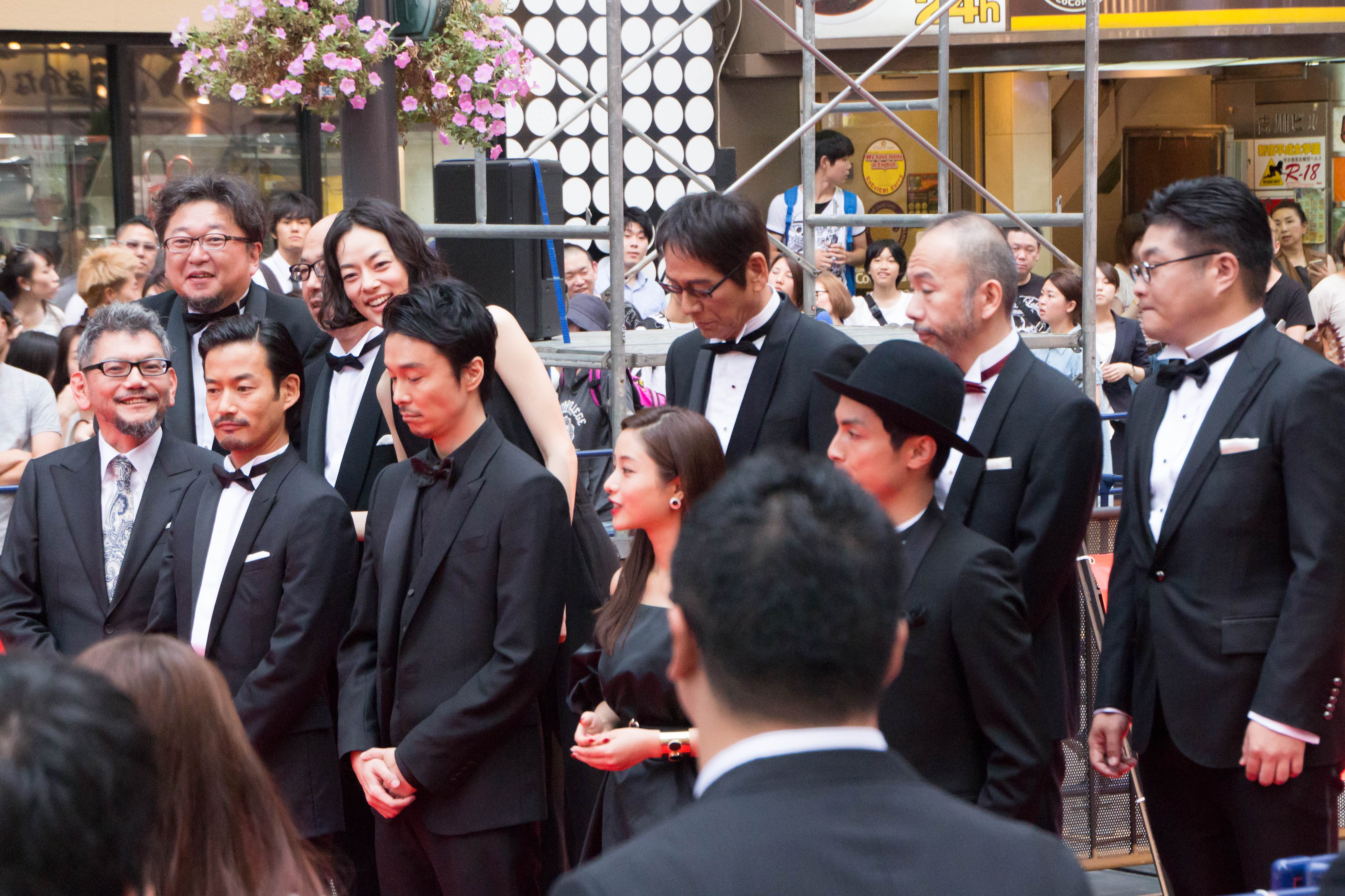 (앞줄 왼쪽부터) 안노 히데아키, 다케노우치 유타카, 하세가와 히로키, 이시하라 사토미, 고라 켄고 (뒷줄 왼쪽부터) 히구치 신지, 오노에 카츠로, 이치카와 미카코, 오스기 렌, 츠카모토 신야, 마츠오 사토루