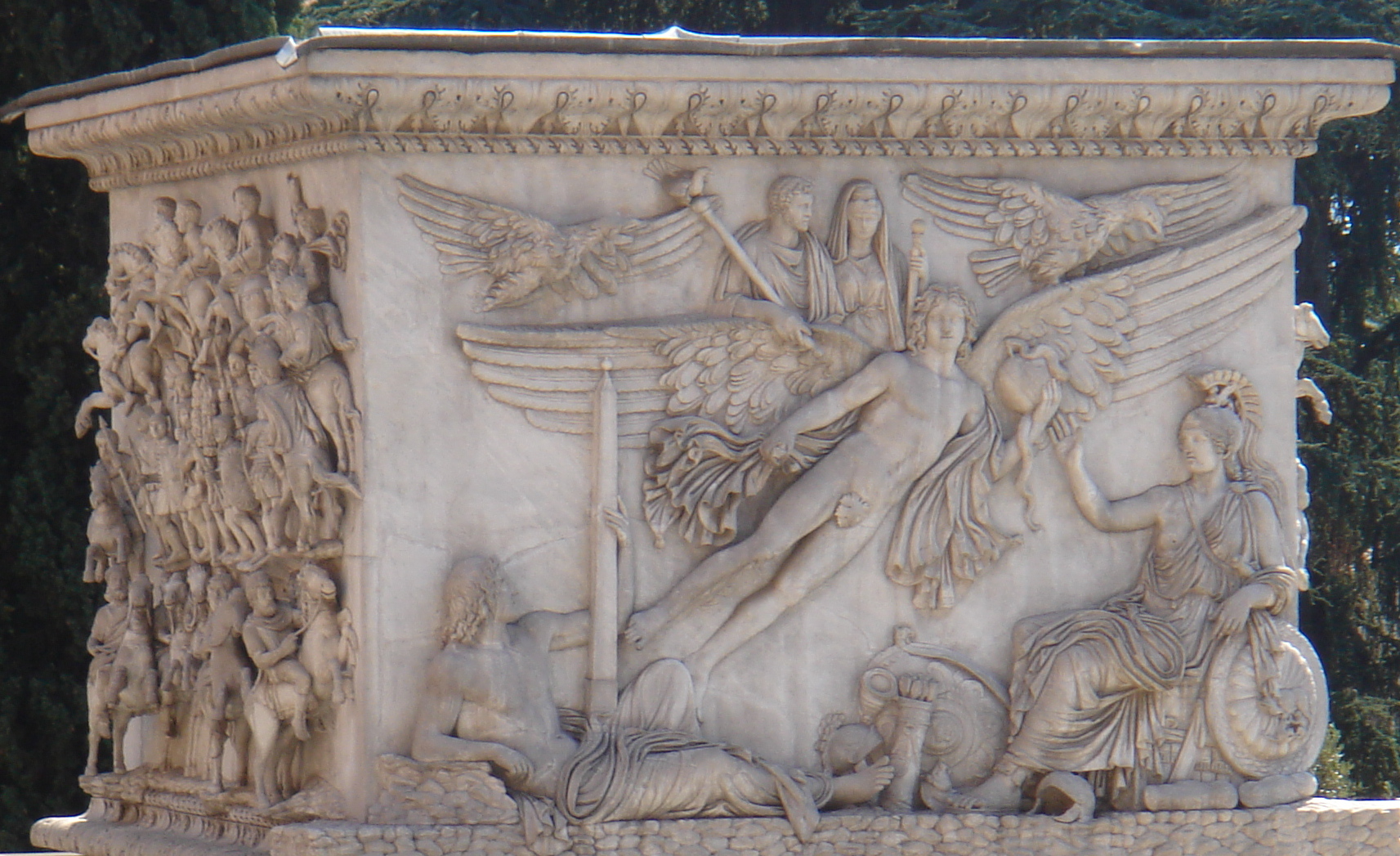 황제숭배가 절정에 달했던 로마 제국 시대에는 때때로 황제의 사망한 사랑하는 사람들—상속인, 황후 또는 하드리아누스의 안티노우스와 같은 연인들—도 신격화되었다. 신격화된 사람들에게는 사후에 그들의 신성을 나타내는 Divusla (여성의 경우 Divala)라는 칭호가 주어졌다. 전통적인 로마 종교는 deusla (신)과 ''divus'' (신이 된, 또는 신격화된 필멸자)를 구분했지만, 일관성이 없었다. 예배를 위한 공간을 제공하기 위해 사원과 기둥이 세워졌다.