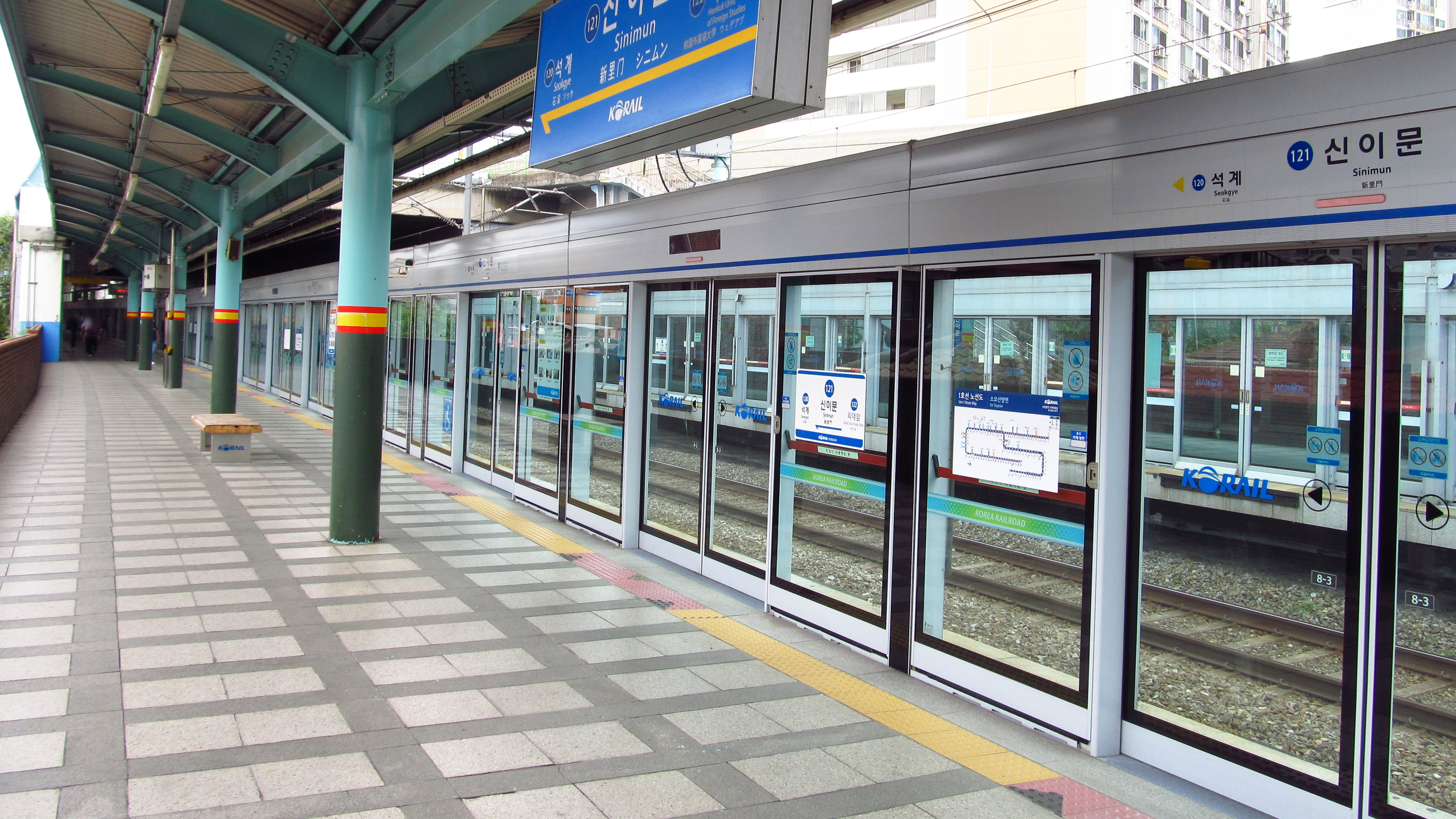 2면 2선의 상대식 승강장을 갖춘 지상역이며, 교상역사 형태이다. 승강장에는 스크린도어가 설치되어 있으며, 출구는 5개다.승강장 안내 | ||