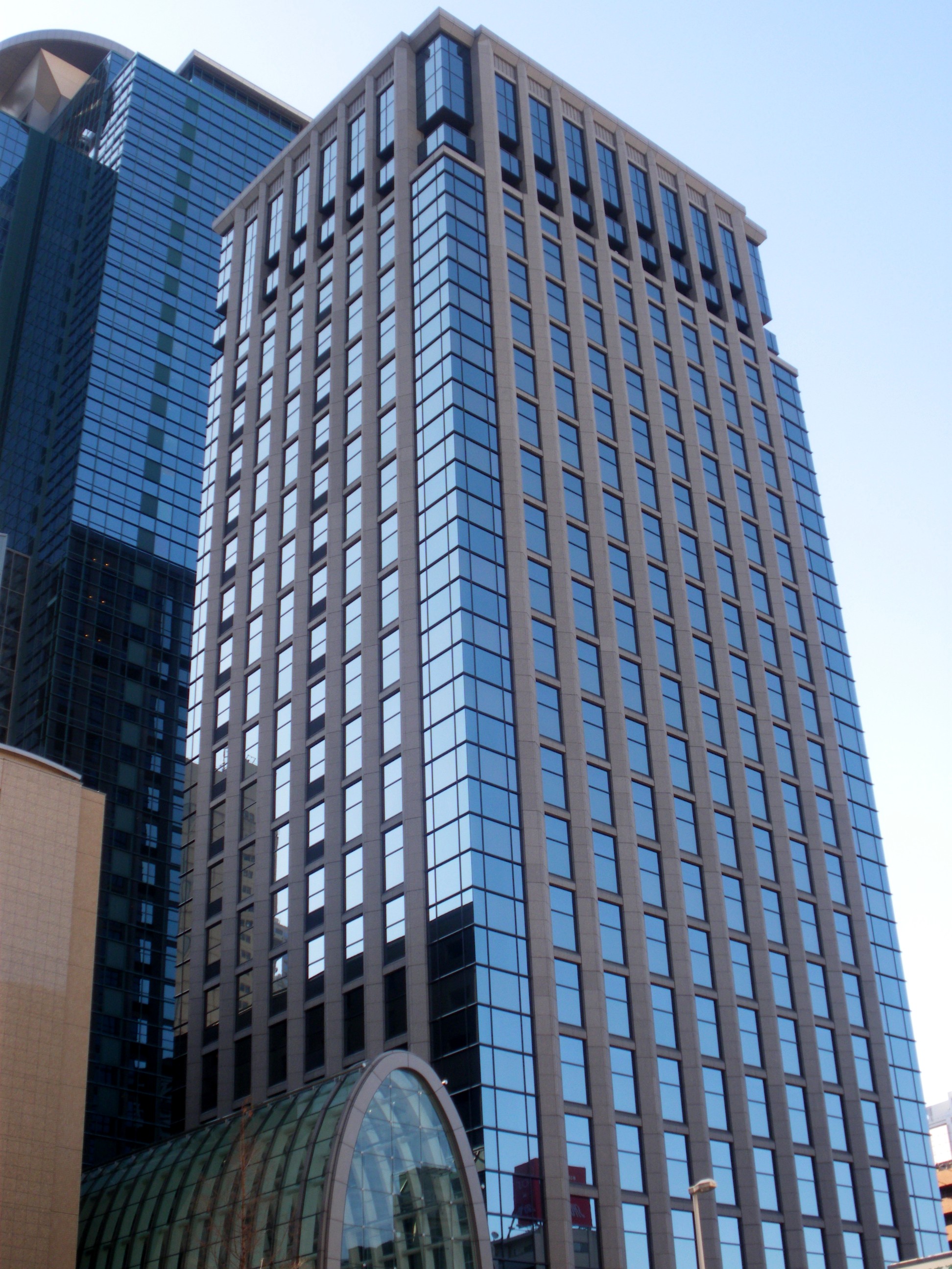 2003년 1월 준공된 선명한 푸른색 유리로 된 빌딩으로, 꼭대기는 날개를 모티프로 했다. 20층에 스카이 로비를 배치하고, 엔트런스 홀인 갤러리아에서 시스루 셔틀 엘리베이터로 직통 수송, 스카이 로비에서 고층 로컬 엘리베이터로 갈아타는 교통 계획을 채택했다.[7]
